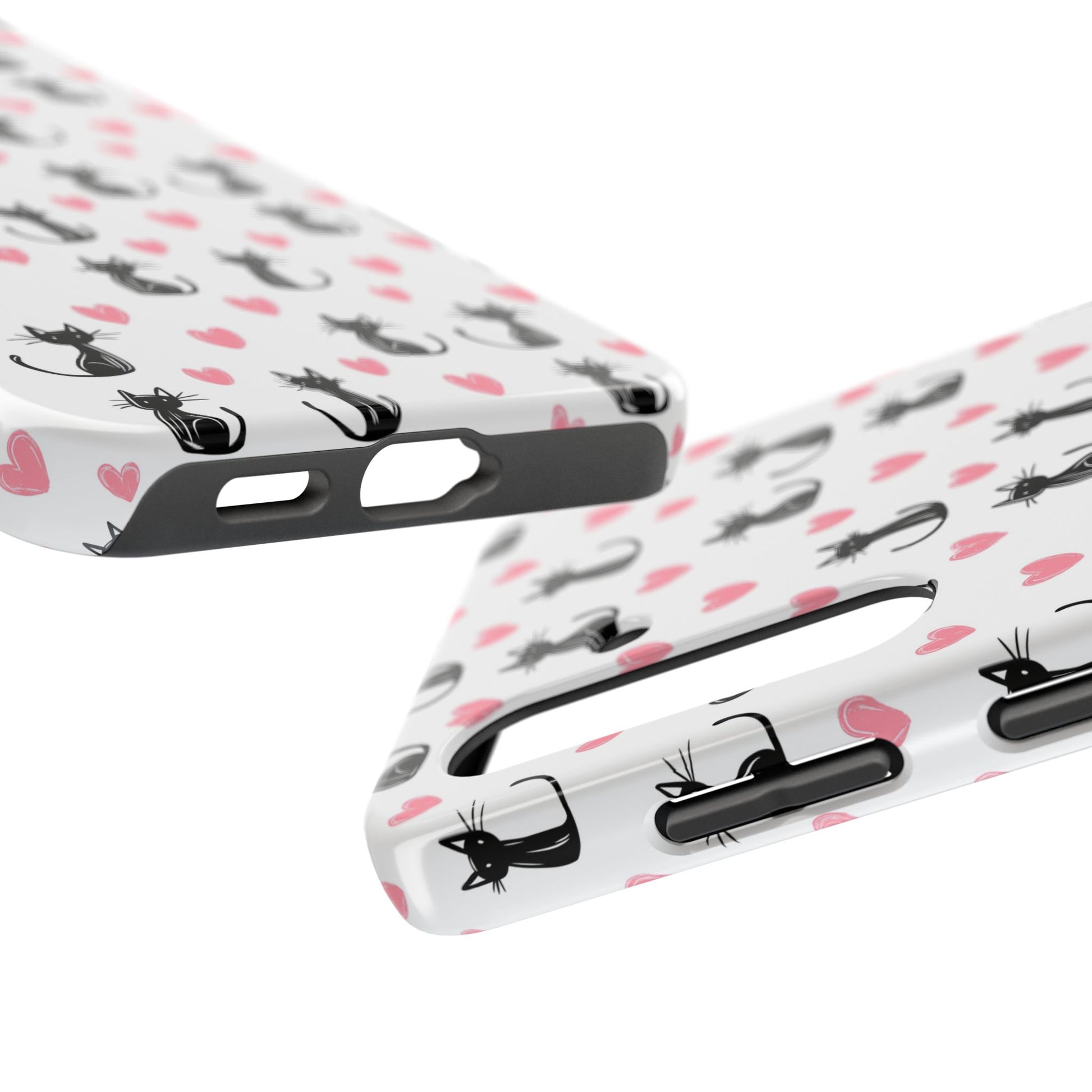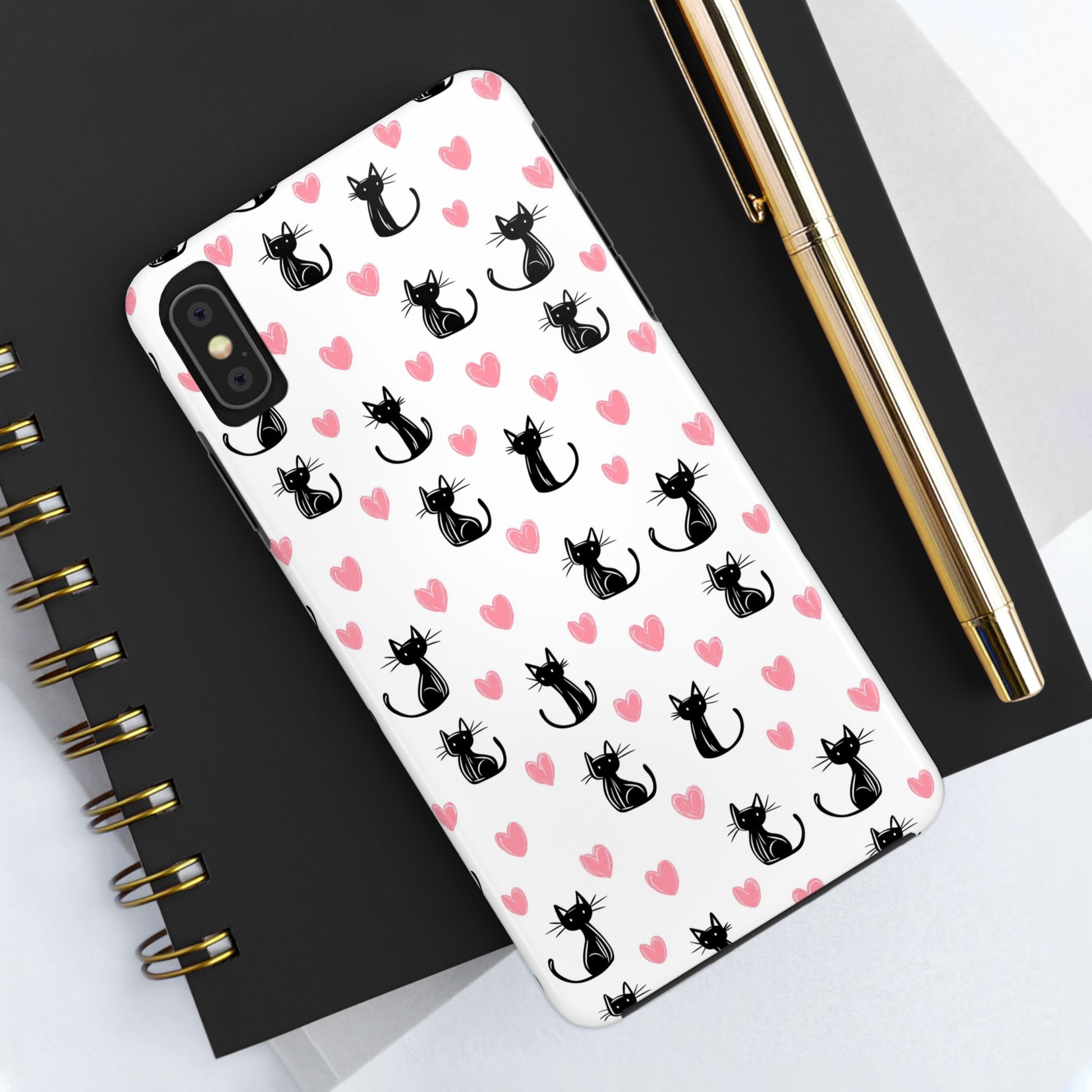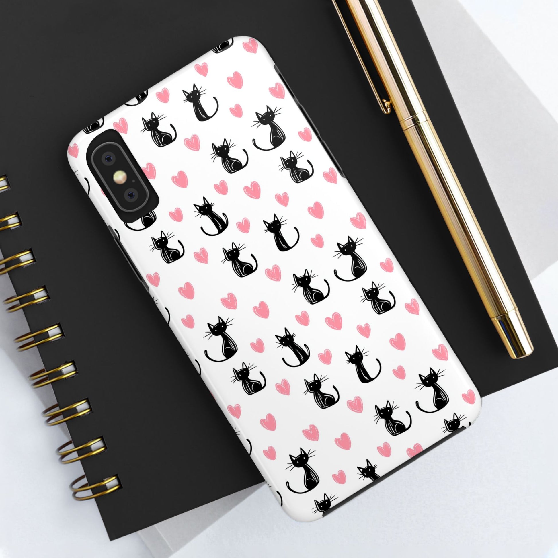 This Phone Cases features a pattern of black cats and hearts, giving a fun and whimsical vibe. Perfect for cat lovers looking to protect their phones in style, this durable and impact-resistant case is great for everyday use or as a thoughtful gift for birthdays or Valentine's Day.
