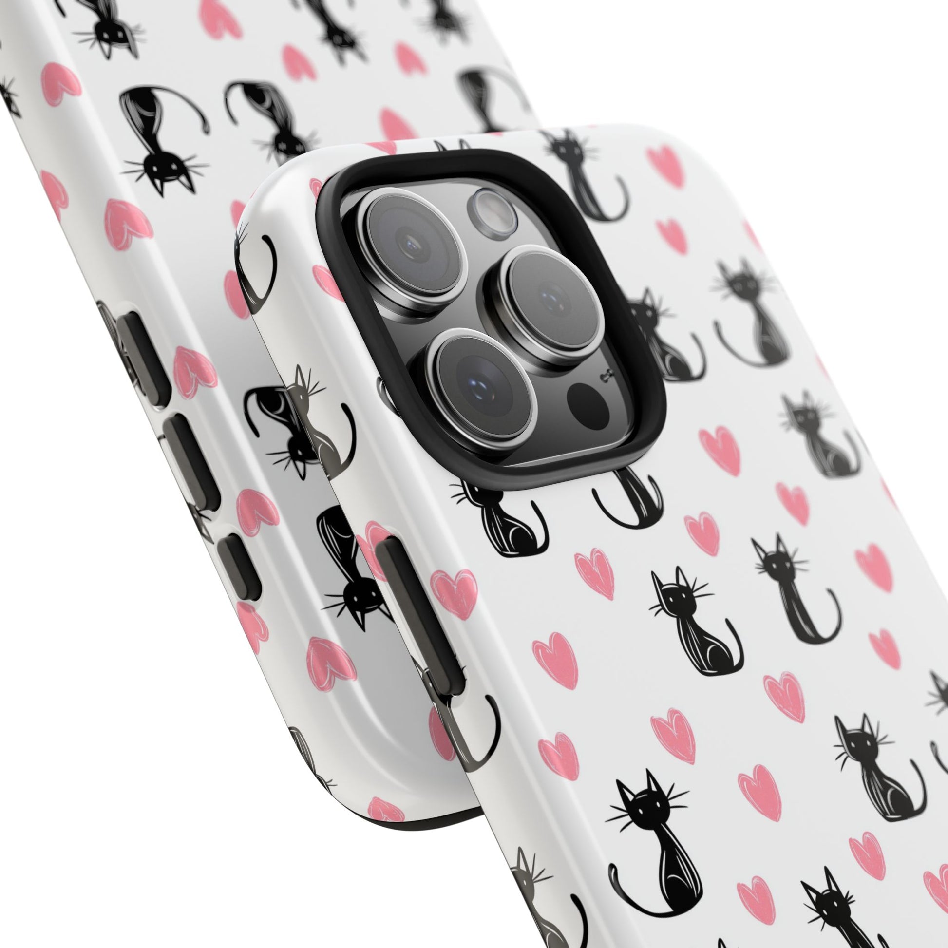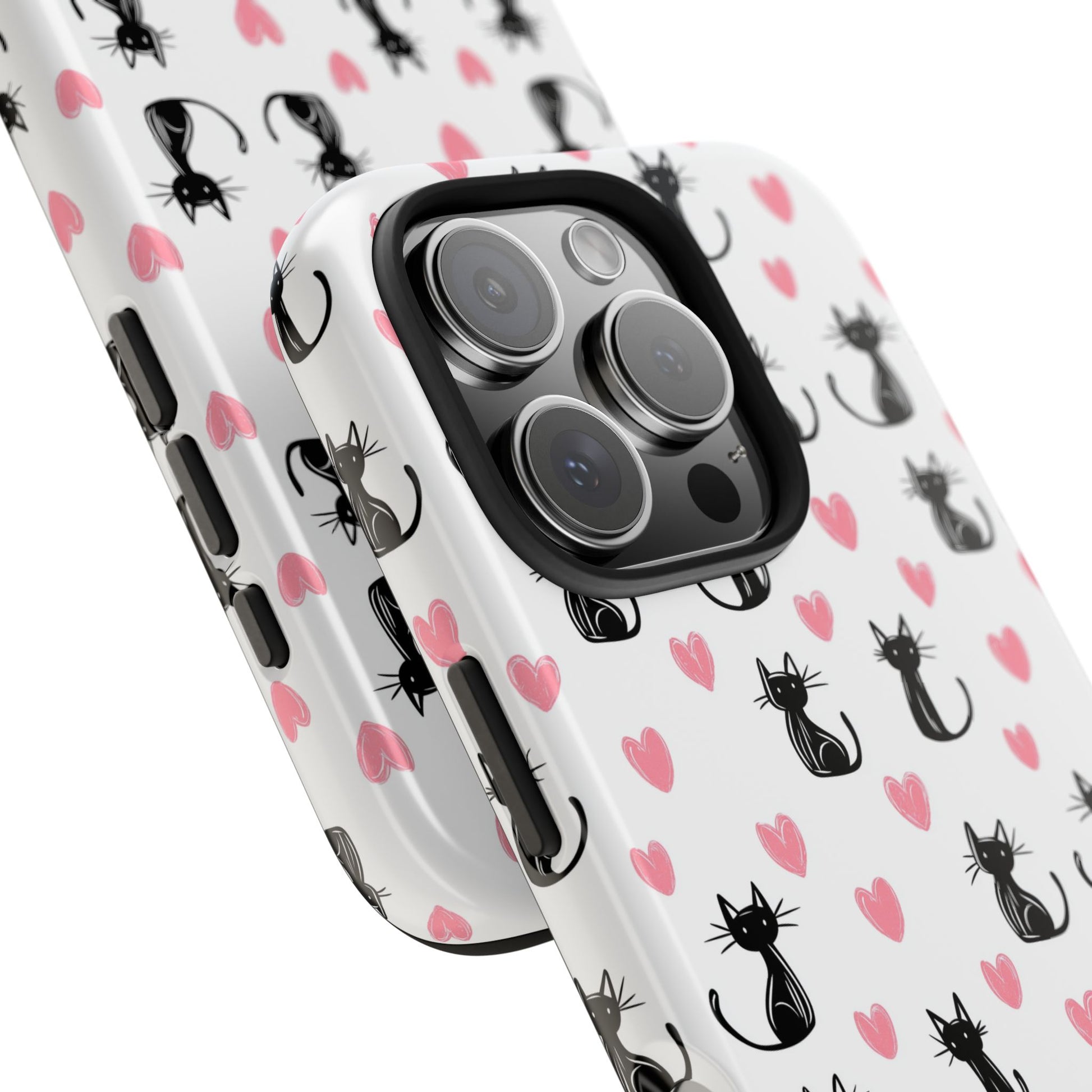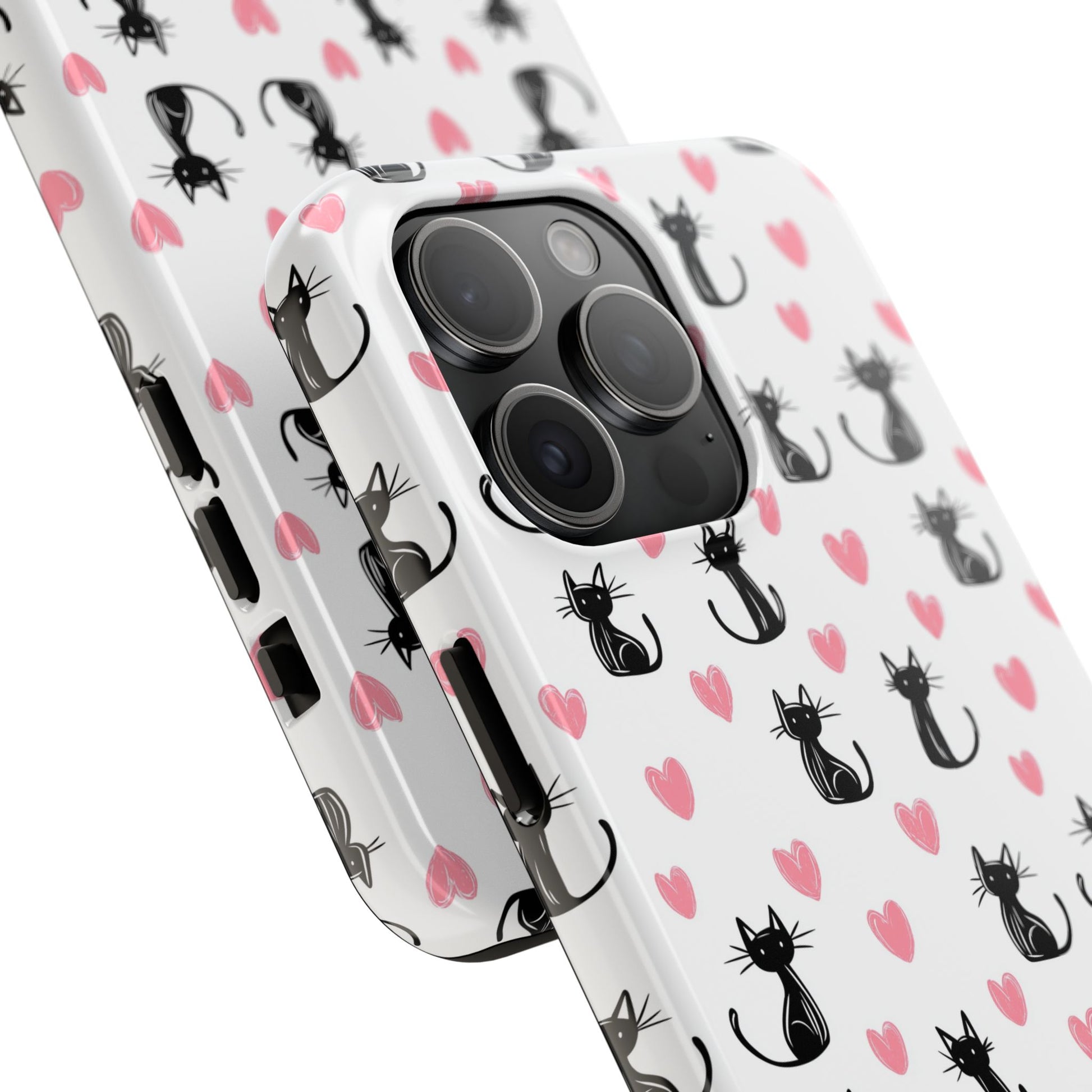 This Phone Cases features a pattern of black cats and hearts, giving a fun and whimsical vibe. Perfect for cat lovers looking to protect their phones in style, this durable and impact-resistant case is great for everyday use or as a thoughtful gift for birthdays or Valentine's Day.