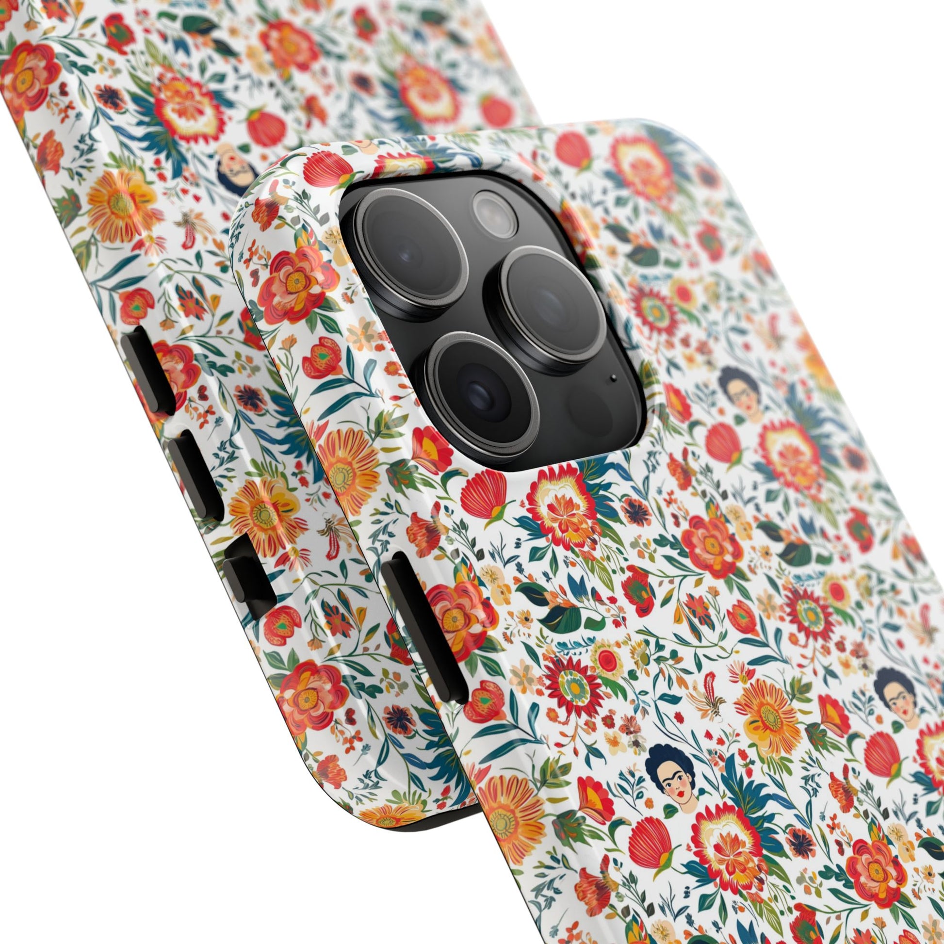 Frida Collection | Colorful Frida Kahlo Tough Phone Case for iPhone, Protective Case, Hard Shell Cover, Shockproof Case, Flower Pattern, Floral Design