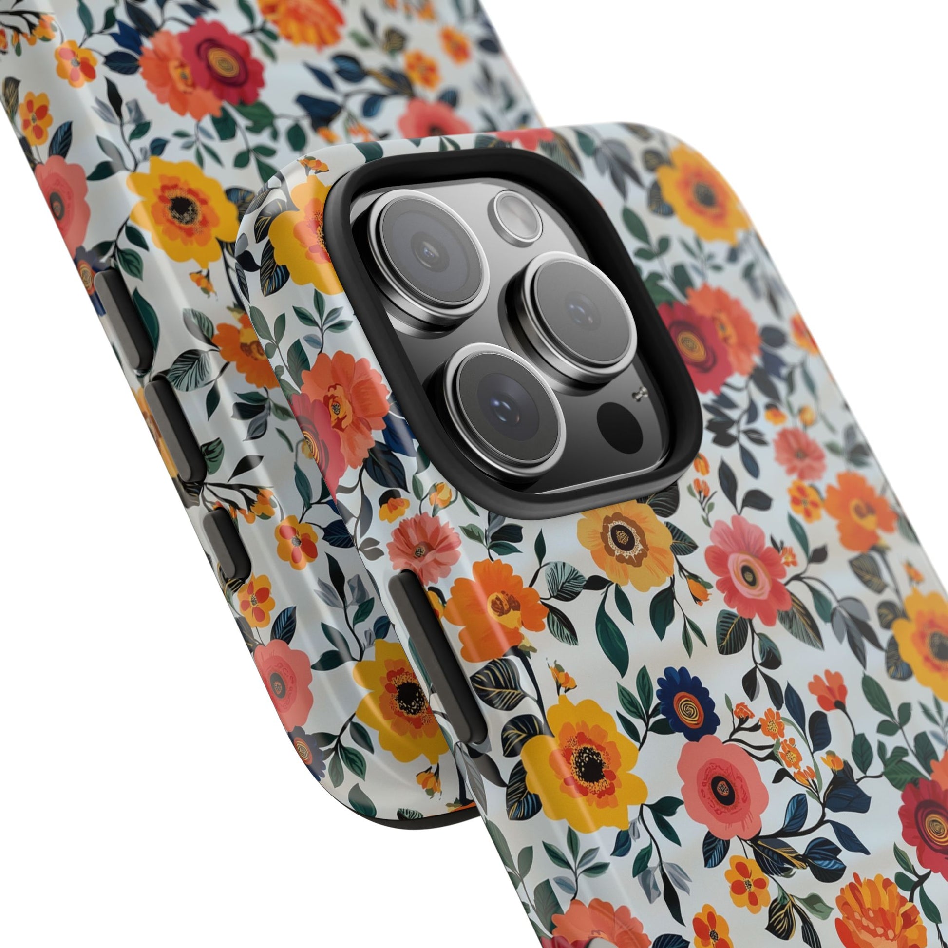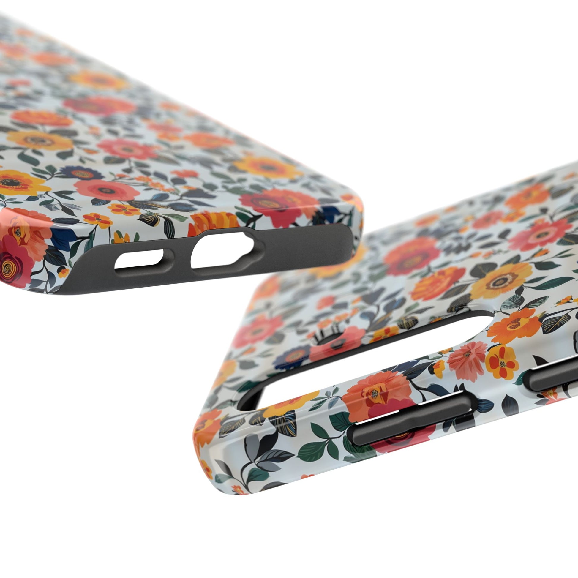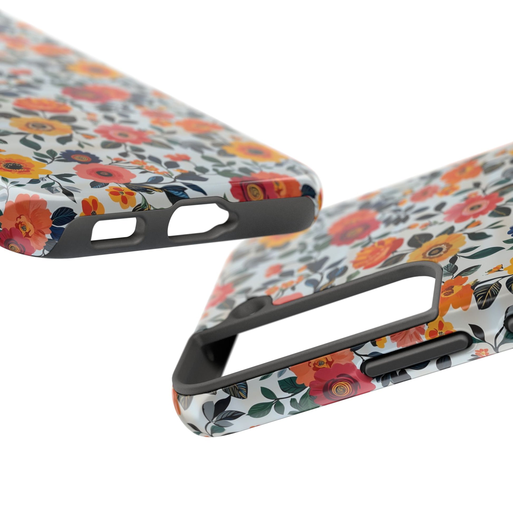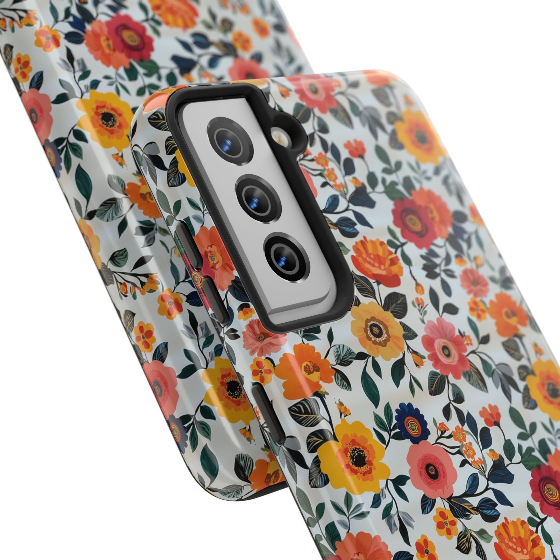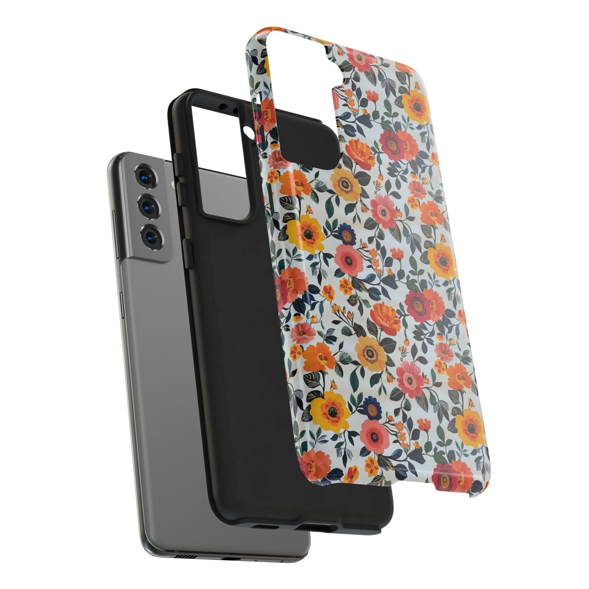 These colorful pink and orange floral pattern phone cases exude a fun and vibrant vibe. Perfect for those looking to add a pop of color to their phone while keeping it protected. Ideal for individuals who appreciate stylish and durable phone accessories. Great for gifting on birthdays, holidays, or special occasions.