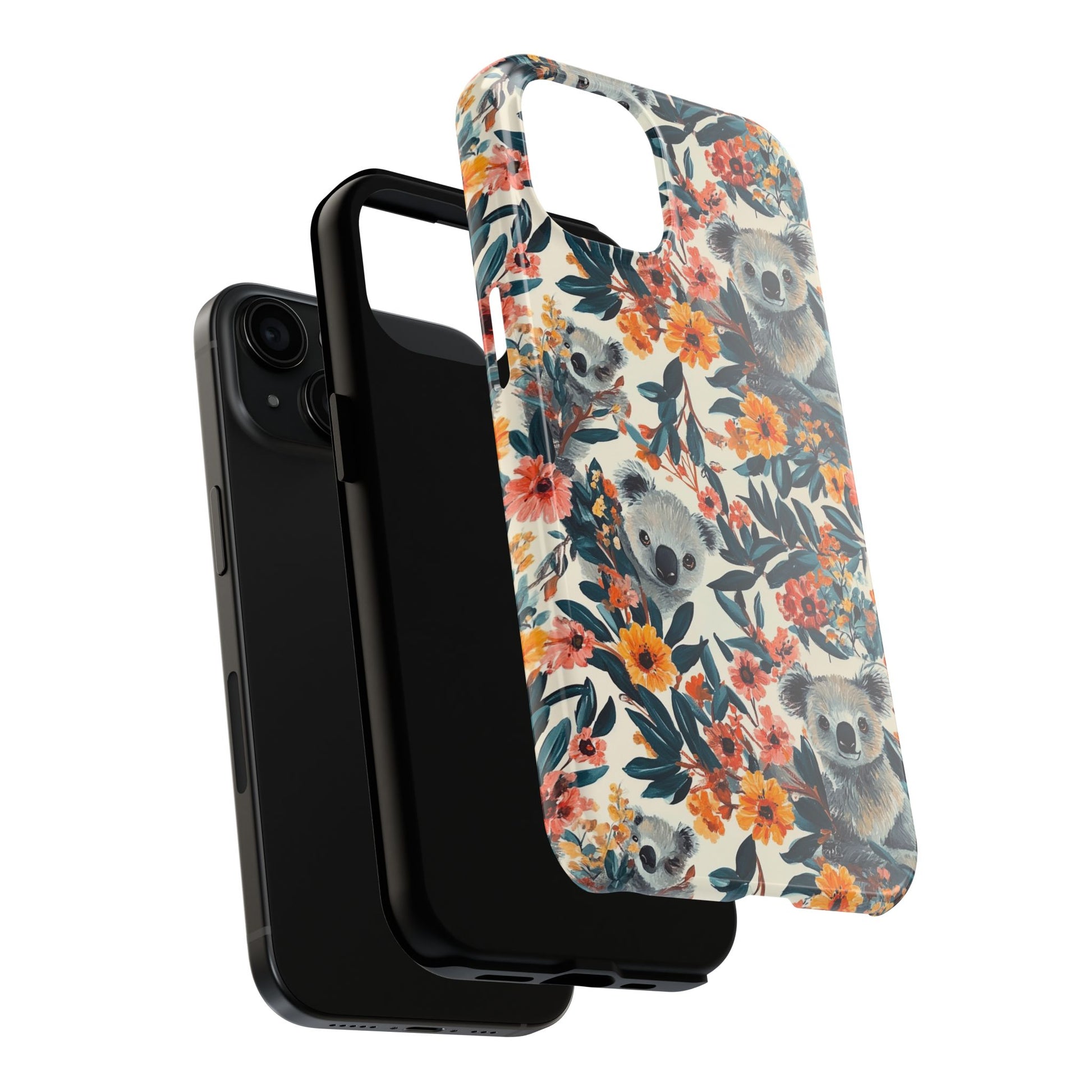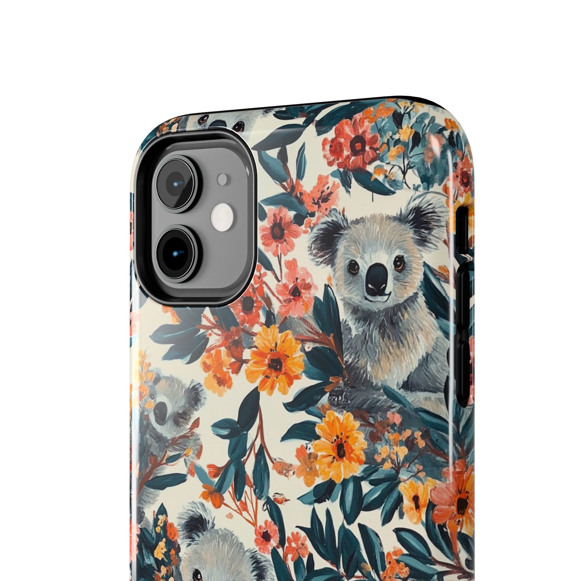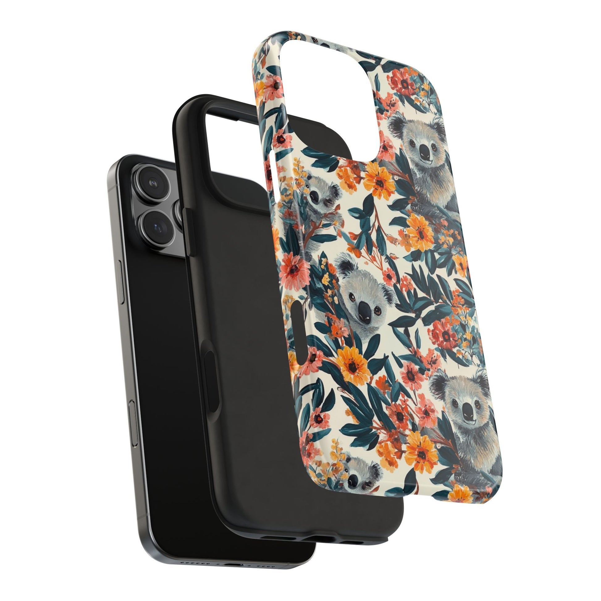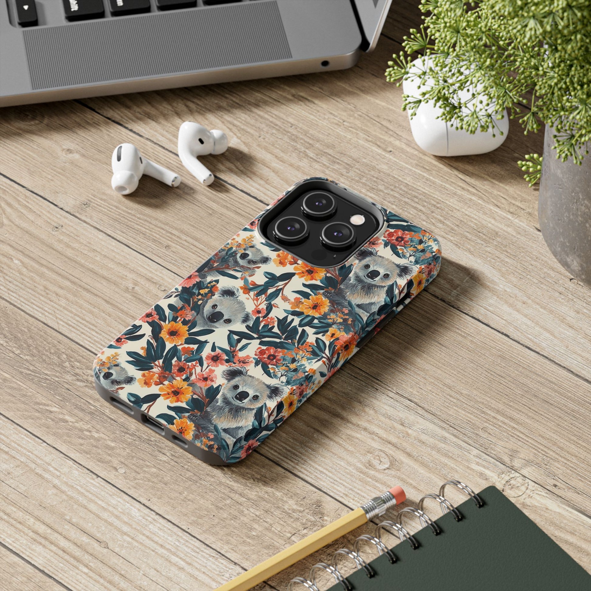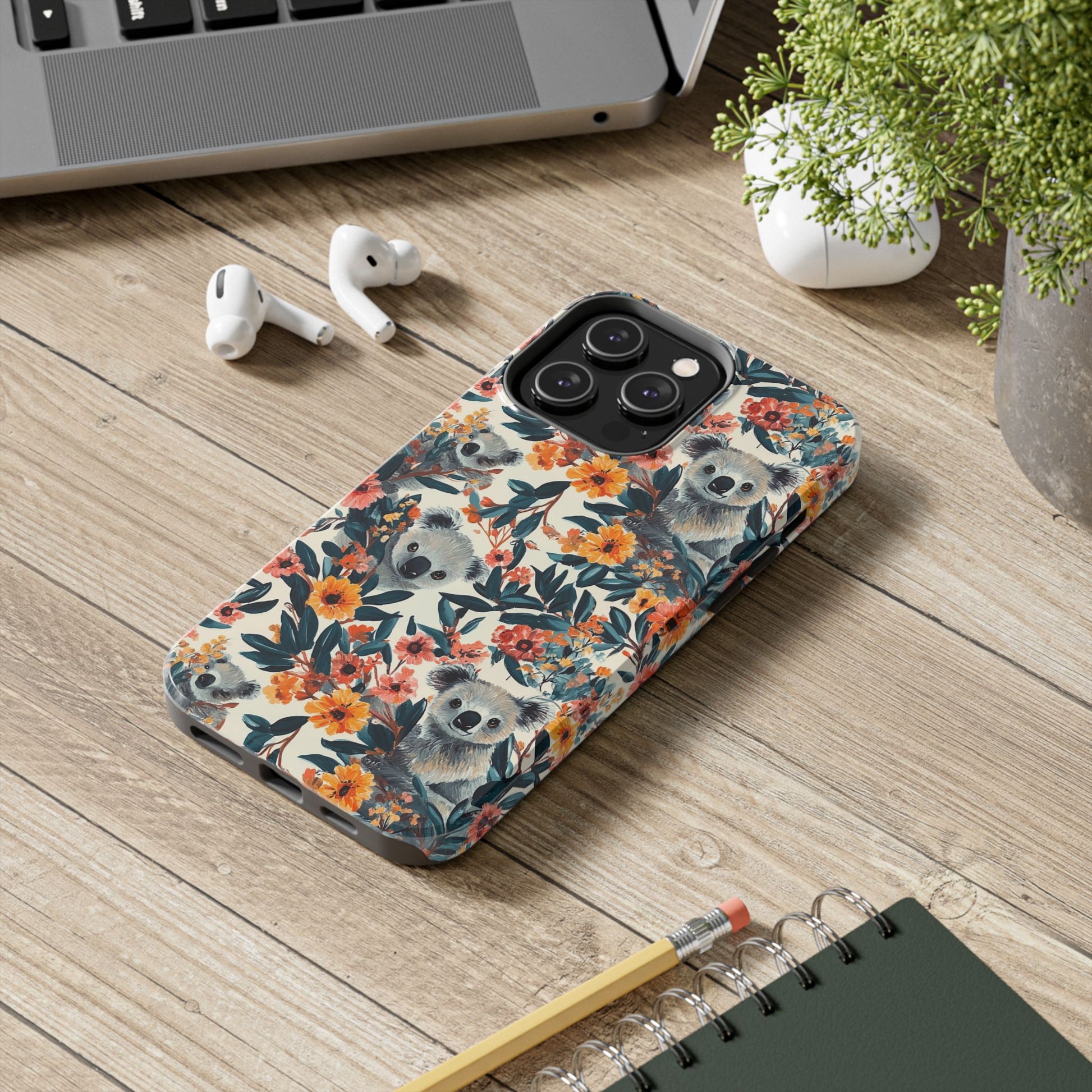 A sturdy and durable phone case featuring a charming design of koalas among flowers. The tough material and impact-resistant features make it perfect for everyday use, providing protection against scratches and shocks. Ideal for animal lovers and nature enthusiasts, this phone case is a great accessory for those who appreciate cute and whimsical designs. Perfect for gifting on birthdays, holidays, or as a special treat for yourself.
