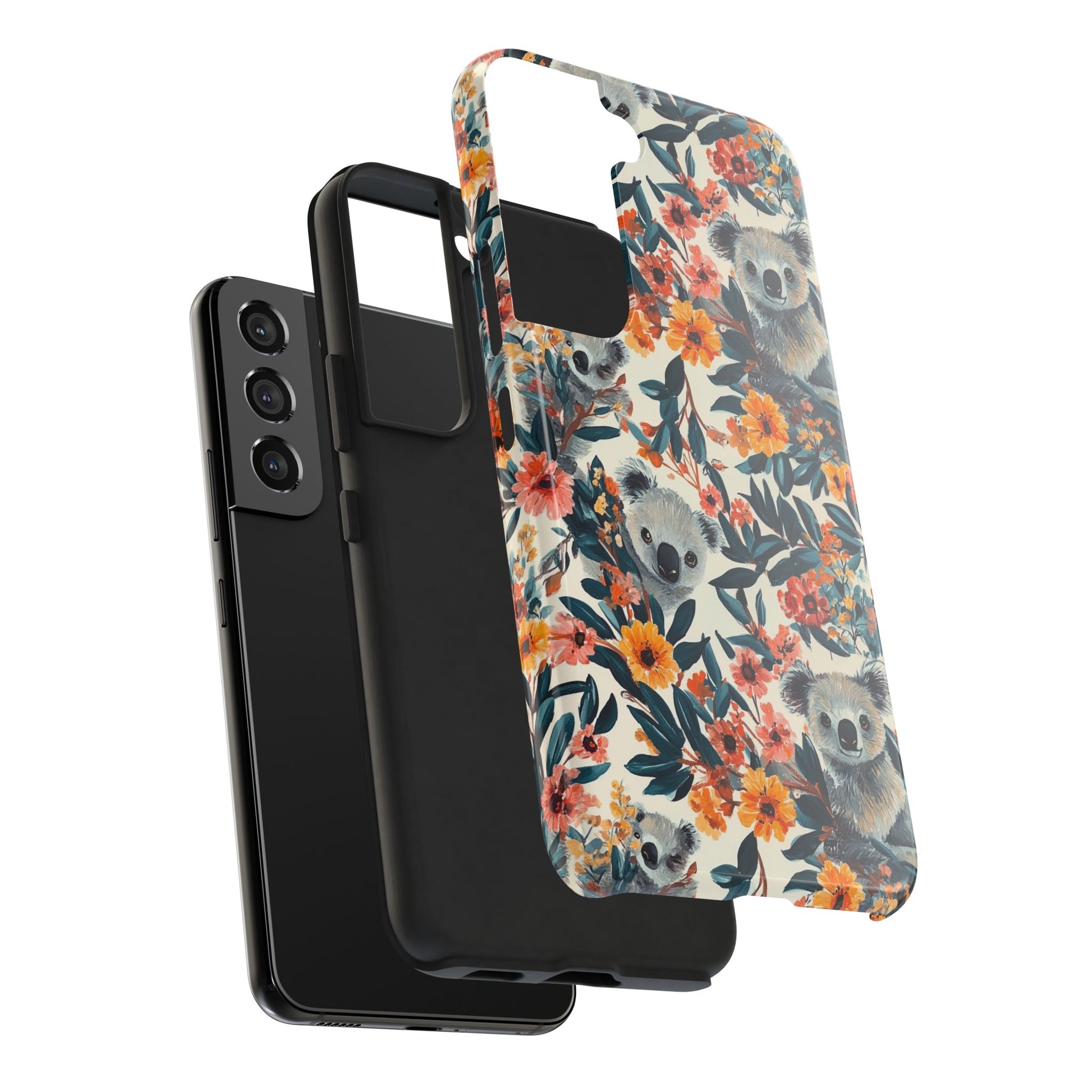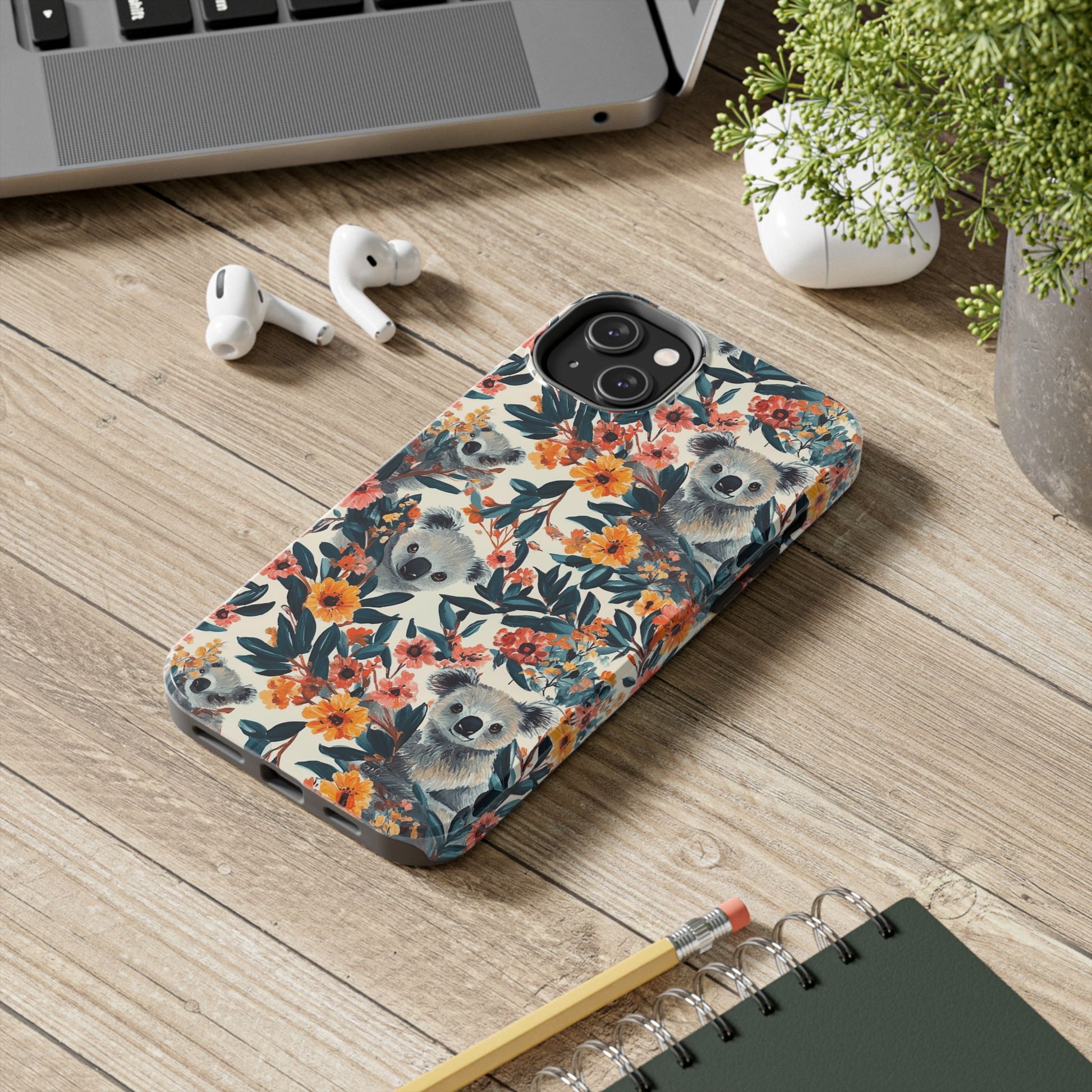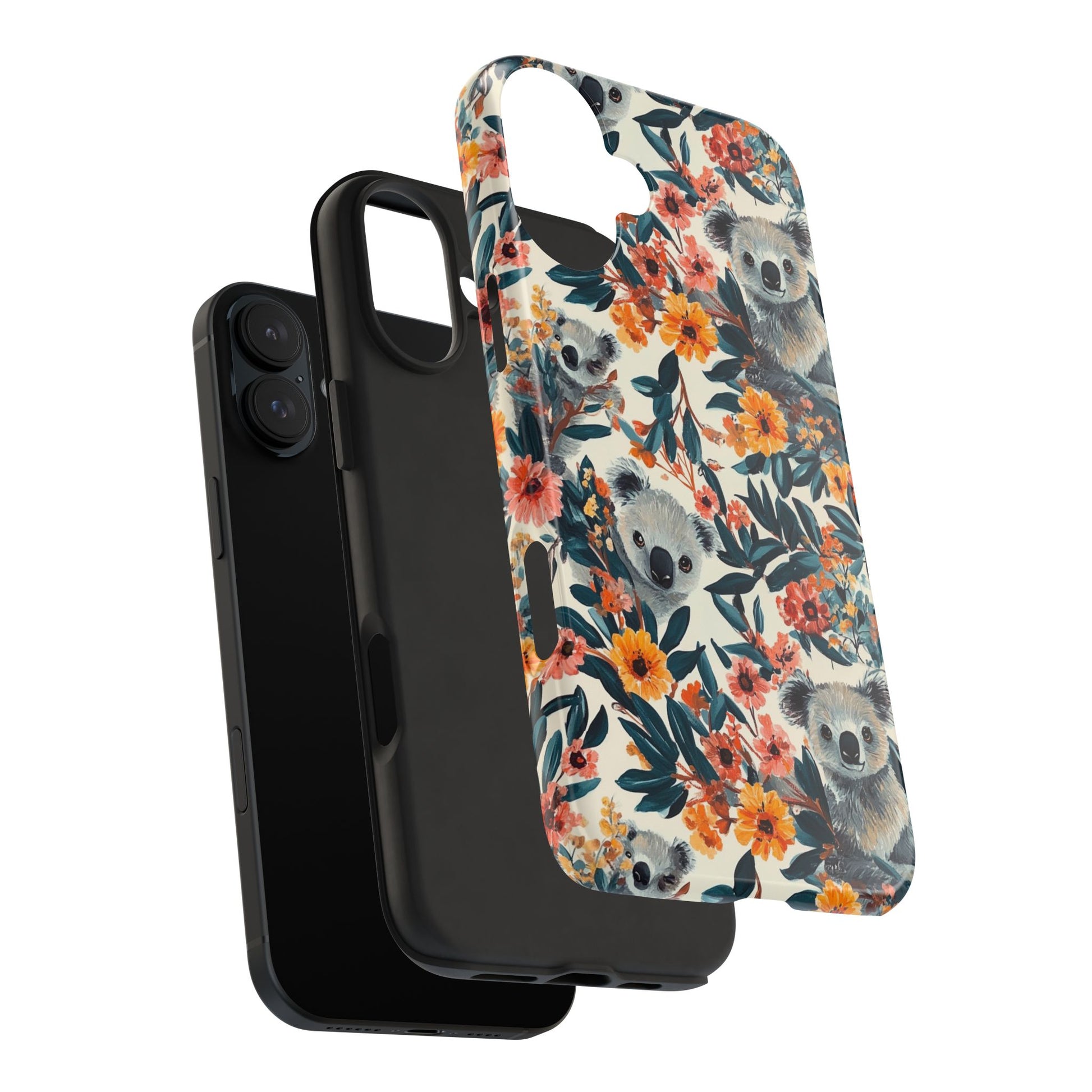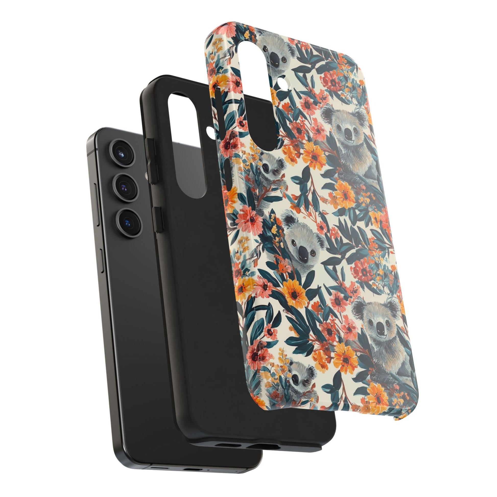 A sturdy and durable phone case featuring a charming design of koalas among flowers. The tough material and impact-resistant features make it perfect for everyday use, providing protection against scratches and shocks. Ideal for animal lovers and nature enthusiasts, this phone case is a great accessory for those who appreciate cute and whimsical designs. Perfect for gifting on birthdays, holidays, or as a special treat for yourself.