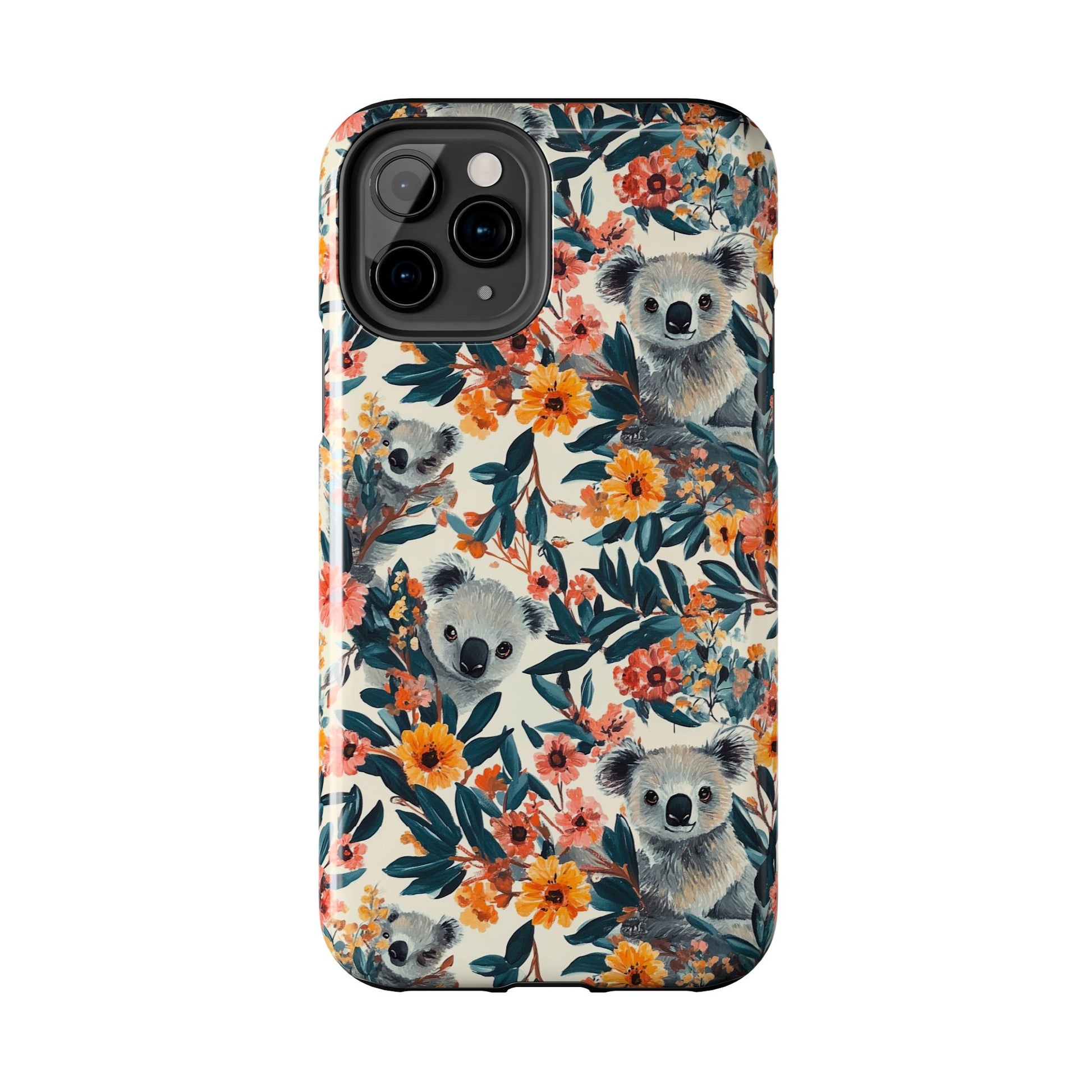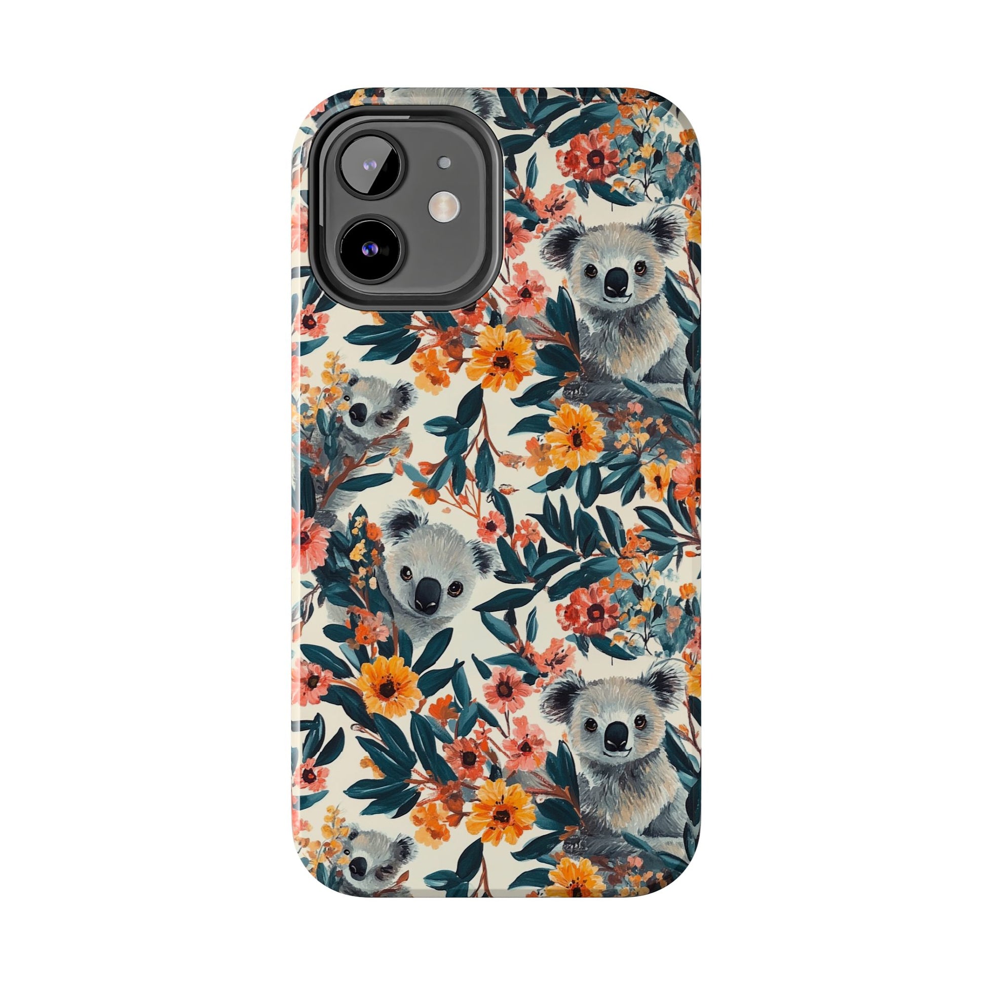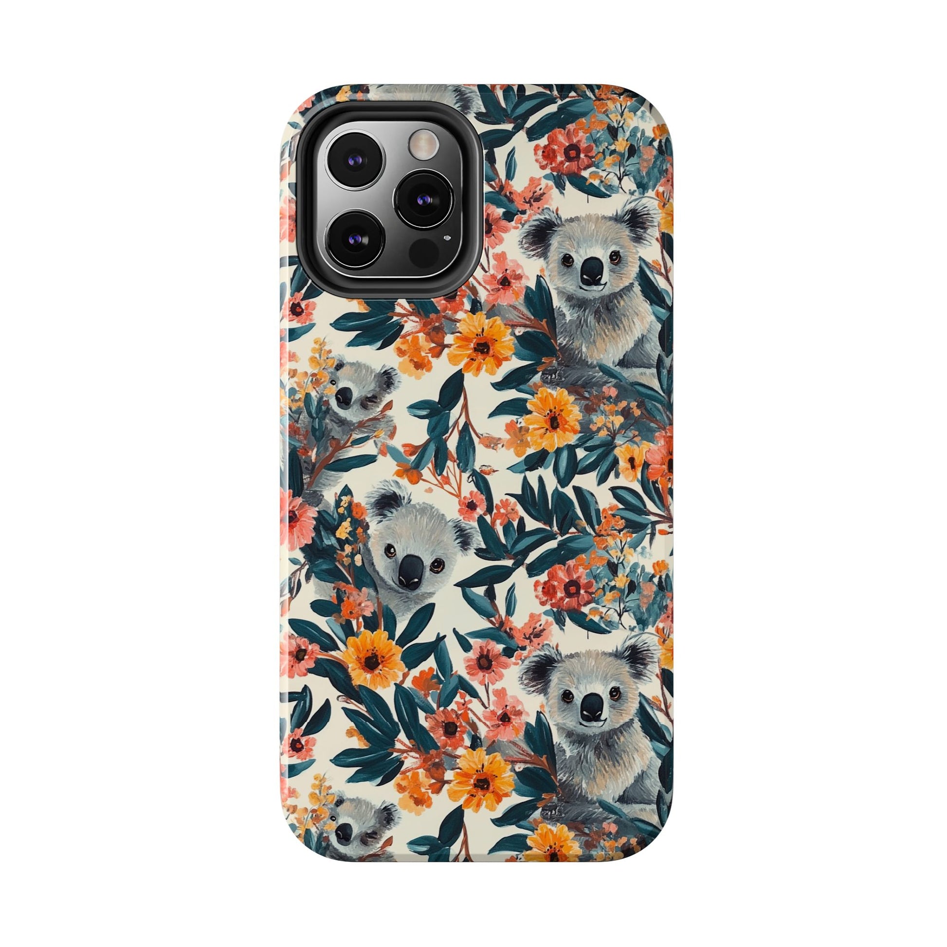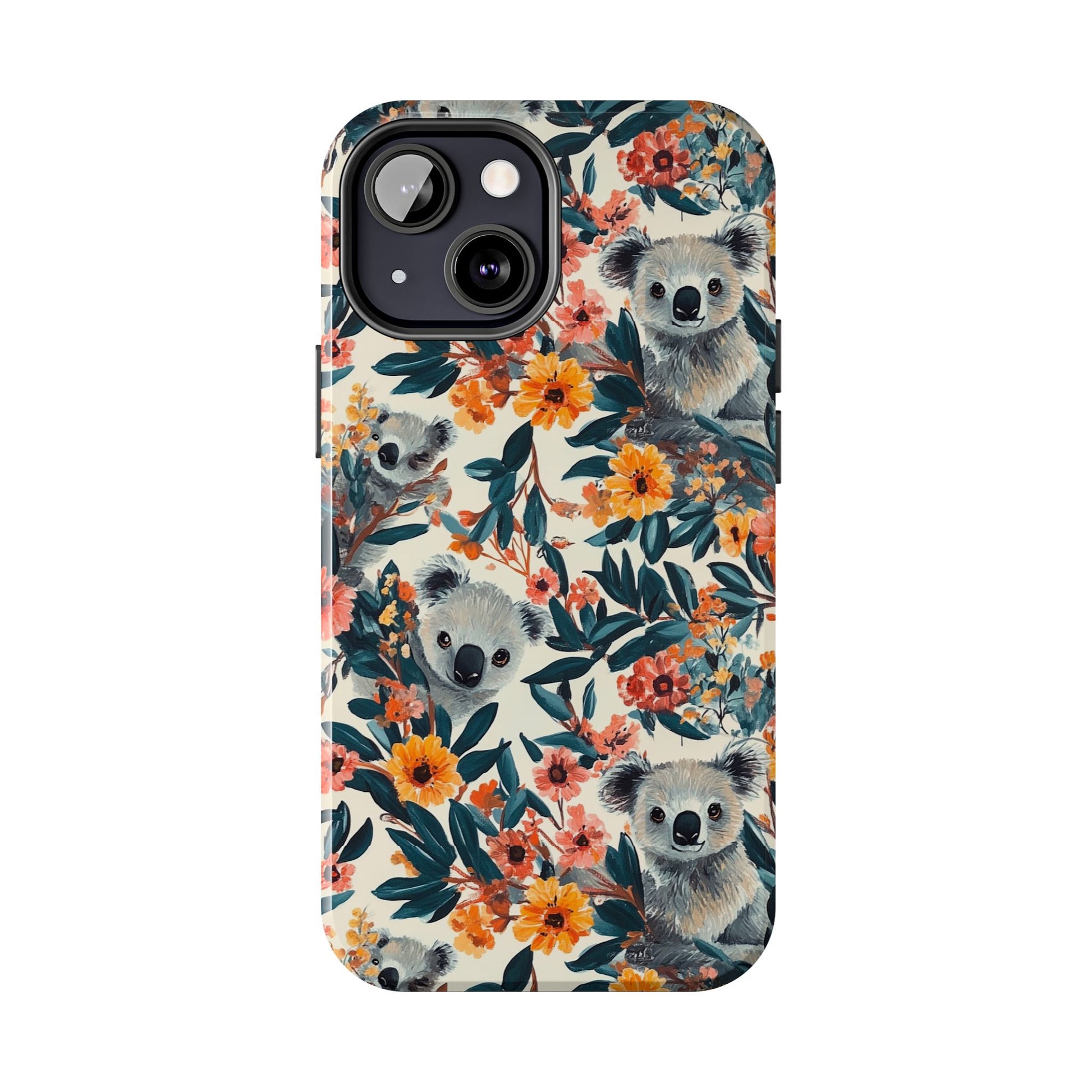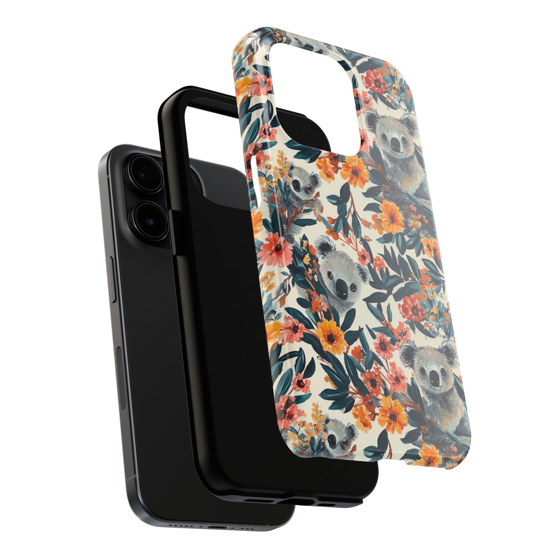 A sturdy and durable phone case featuring a charming design of koalas among flowers. The tough material and impact-resistant features make it perfect for everyday use, providing protection against scratches and shocks. Ideal for animal lovers and nature enthusiasts, this phone case is a great accessory for those who appreciate cute and whimsical designs. Perfect for gifting on birthdays, holidays, or as a special treat for yourself.