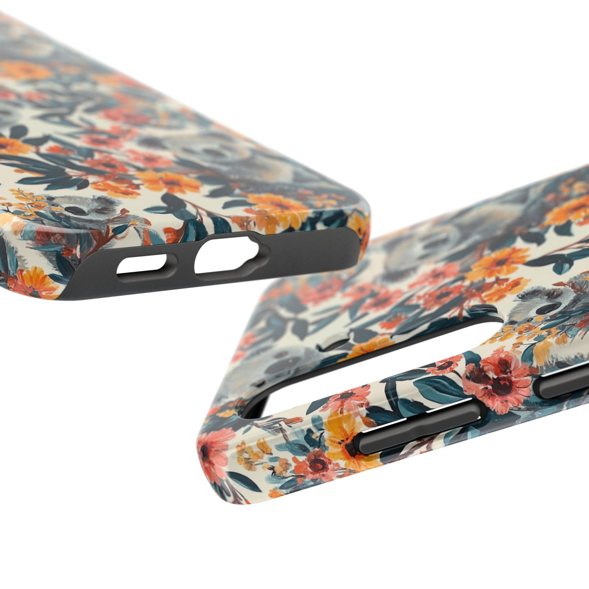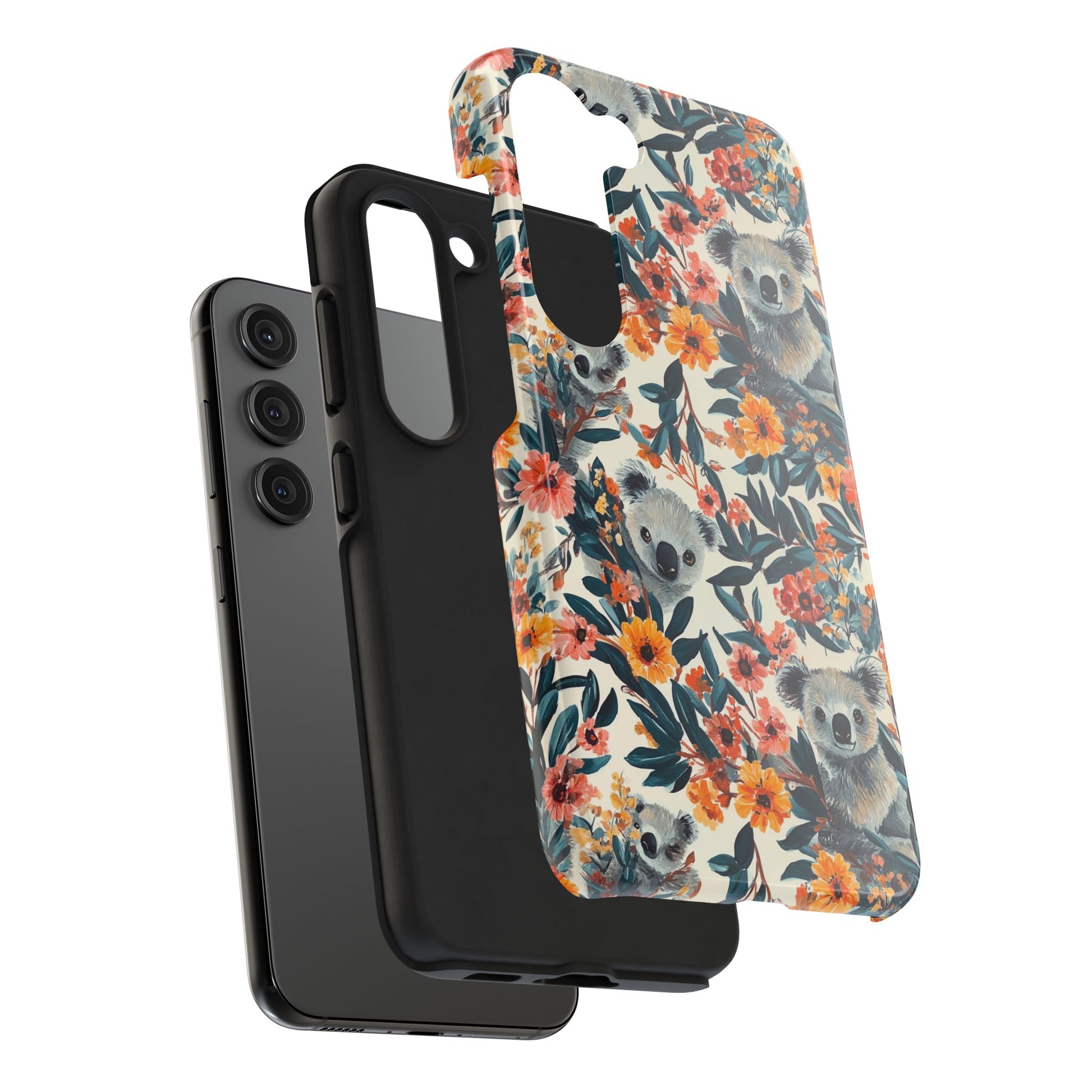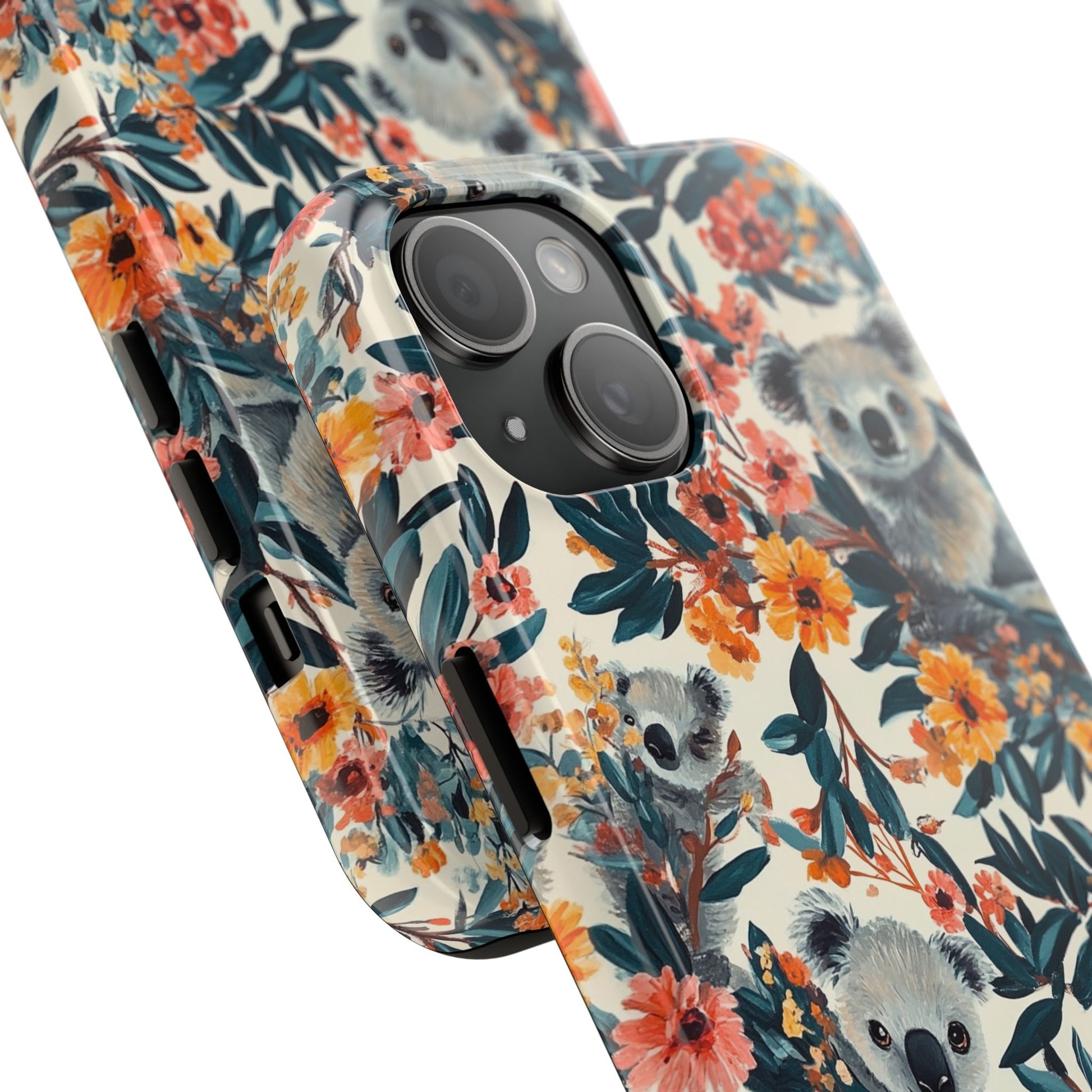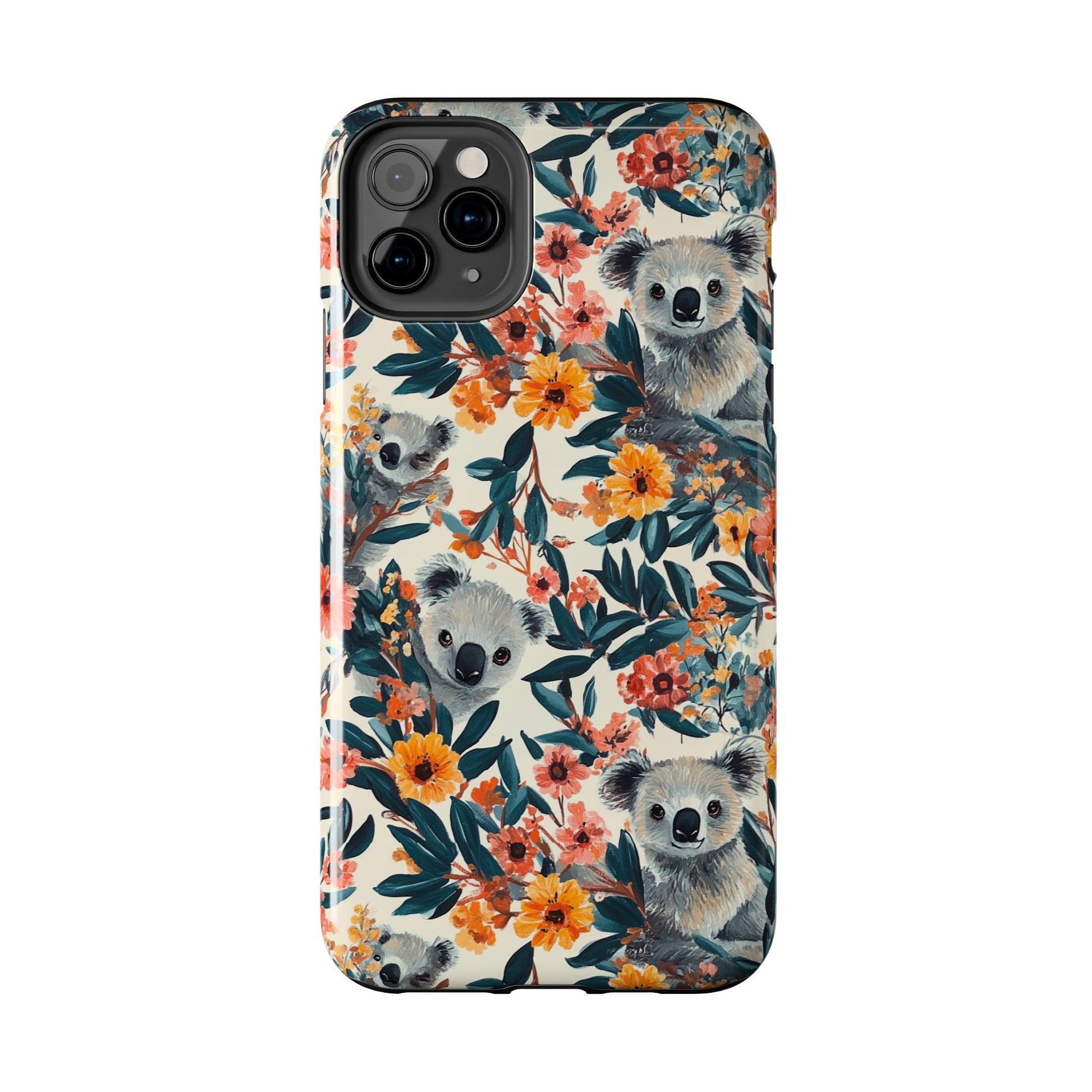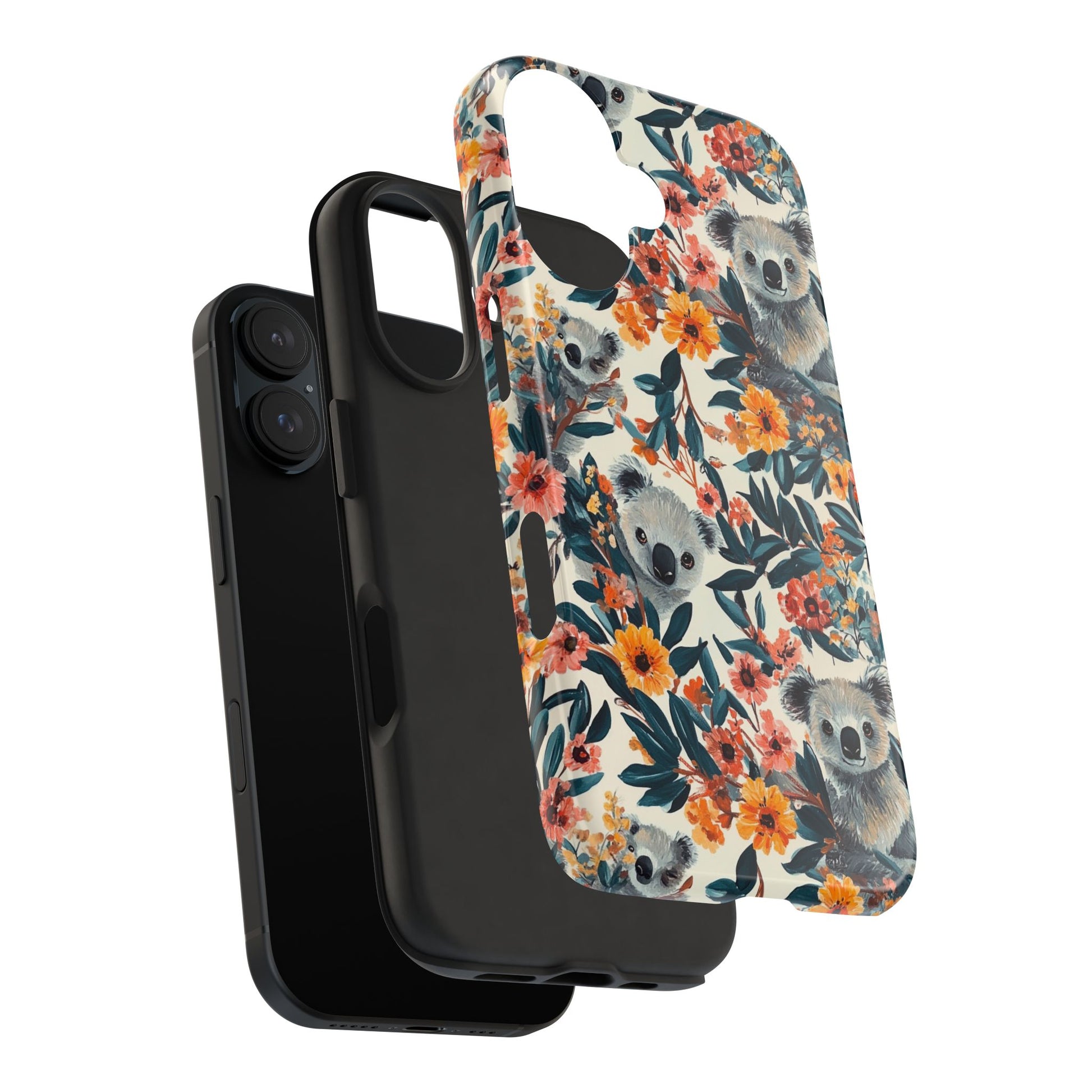 A sturdy and durable phone case featuring a charming design of koalas among flowers. The tough material and impact-resistant features make it perfect for everyday use, providing protection against scratches and shocks. Ideal for animal lovers and nature enthusiasts, this phone case is a great accessory for those who appreciate cute and whimsical designs. Perfect for gifting on birthdays, holidays, or as a special treat for yourself.