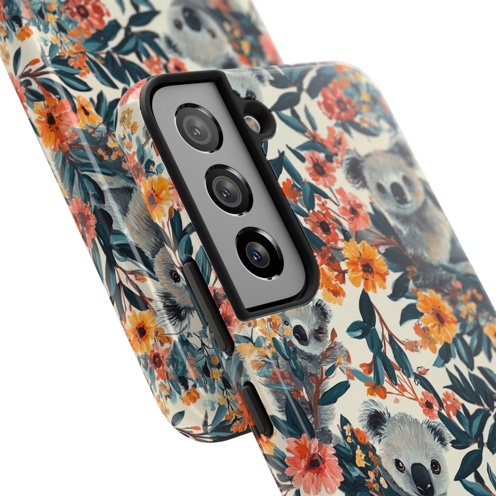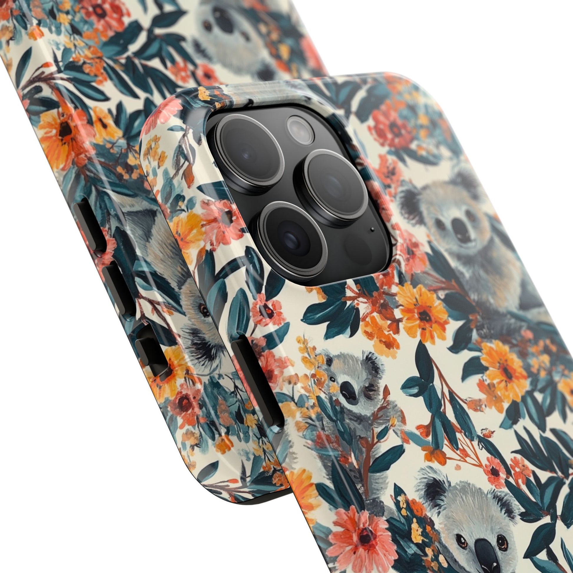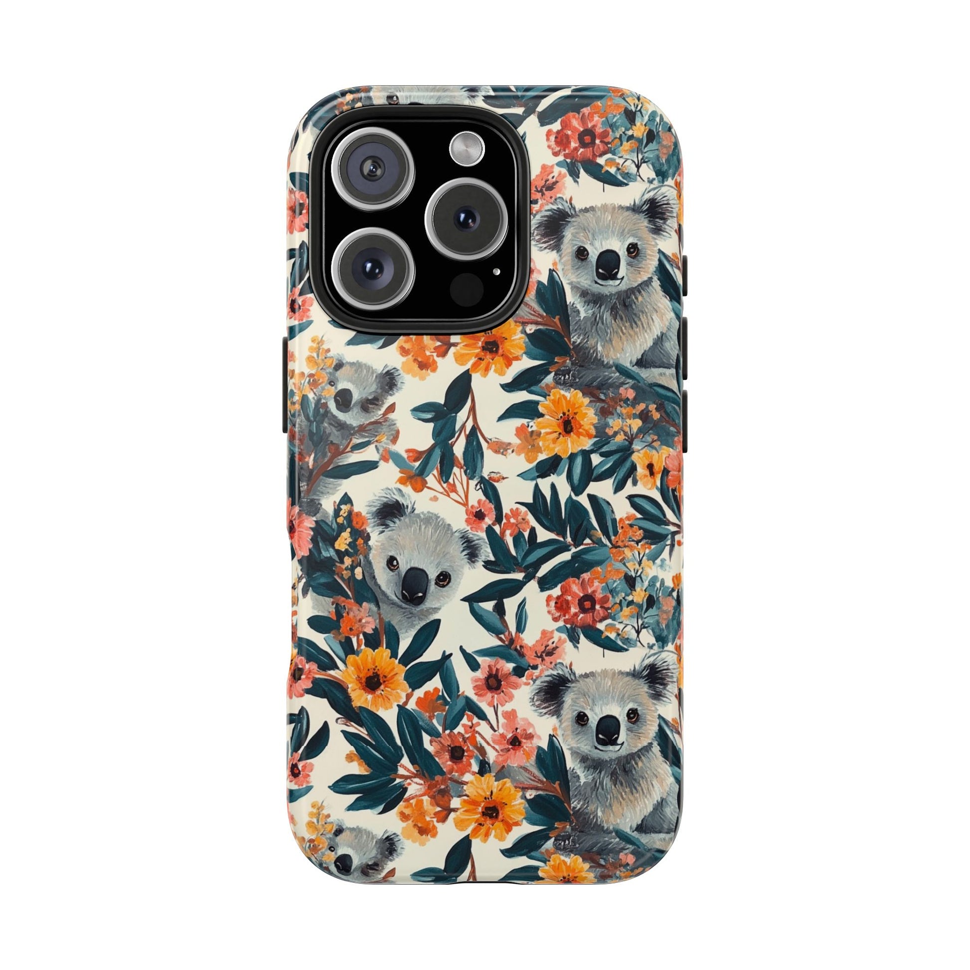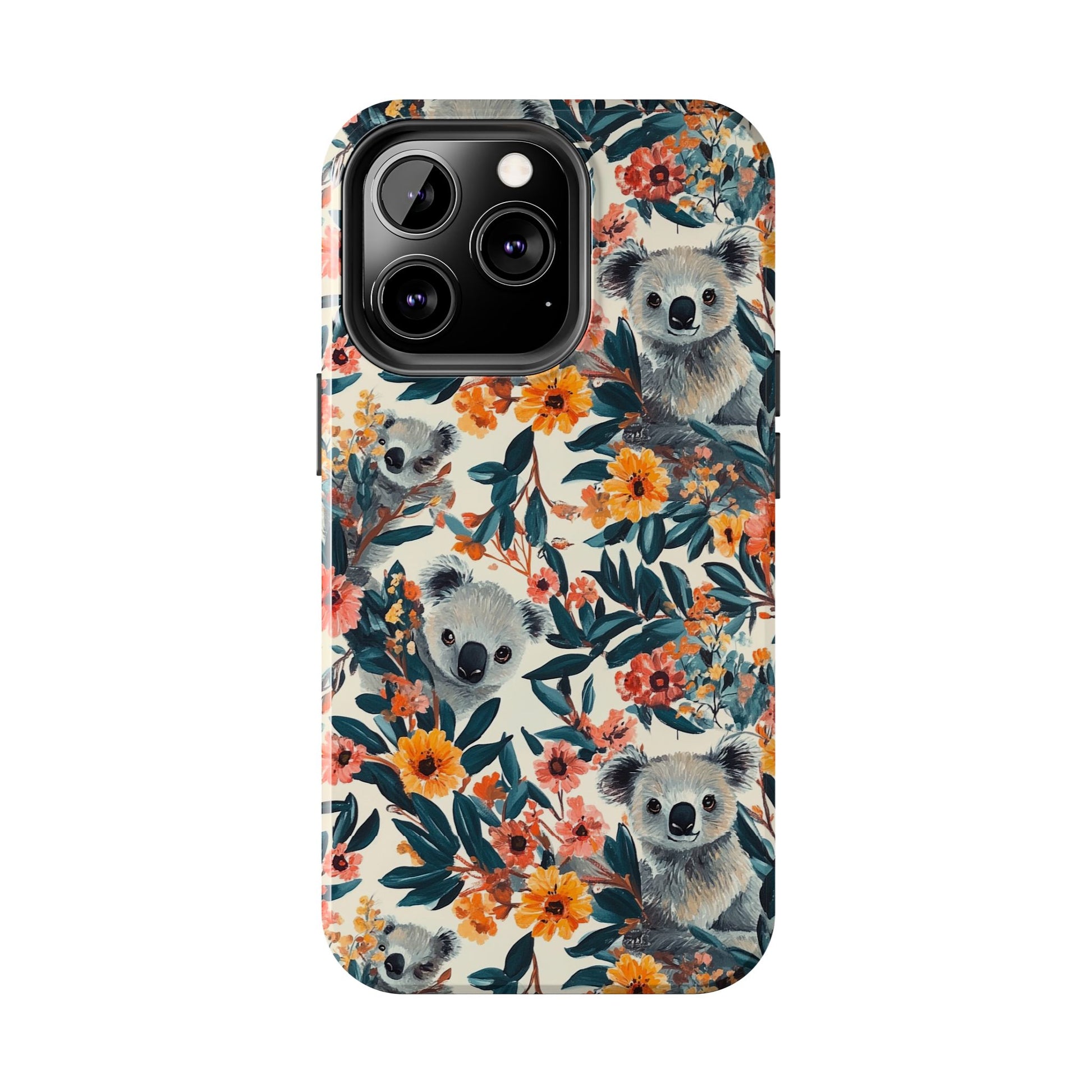 A sturdy and durable phone case featuring a charming design of koalas among flowers. The tough material and impact-resistant features make it perfect for everyday use, providing protection against scratches and shocks. Ideal for animal lovers and nature enthusiasts, this phone case is a great accessory for those who appreciate cute and whimsical designs. Perfect for gifting on birthdays, holidays, or as a special treat for yourself.