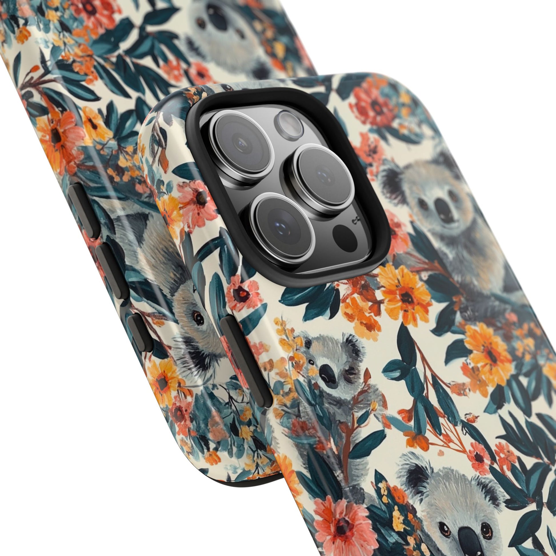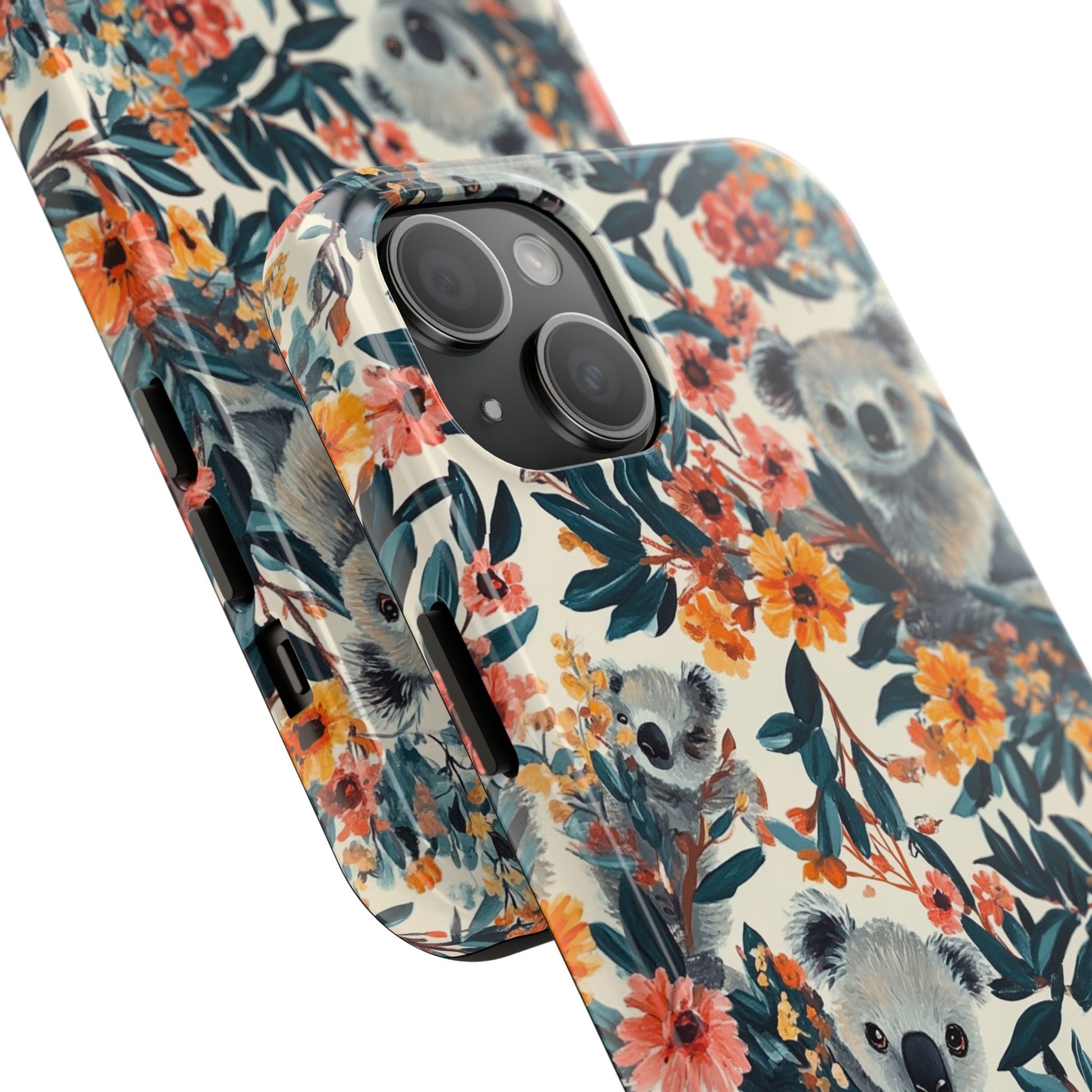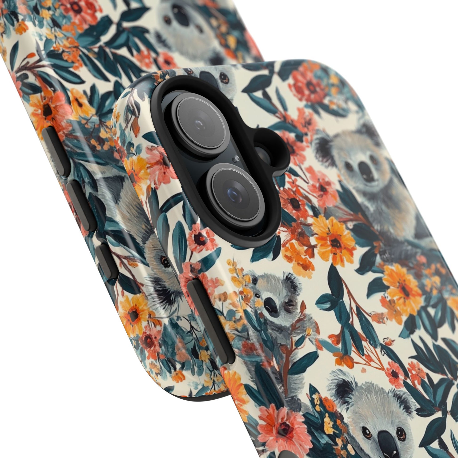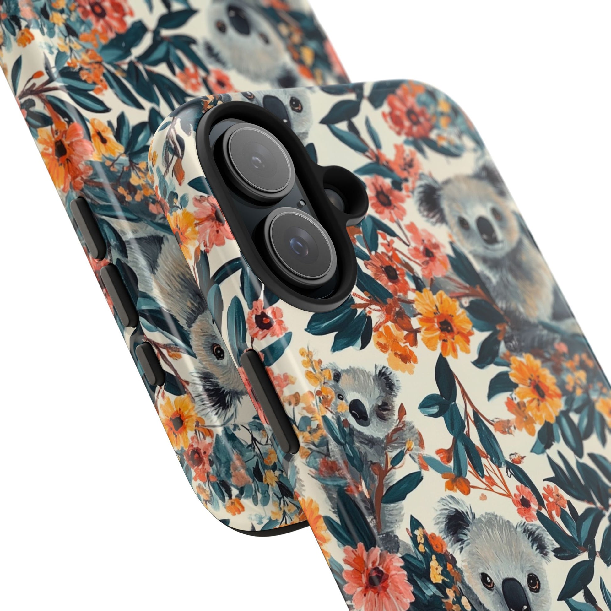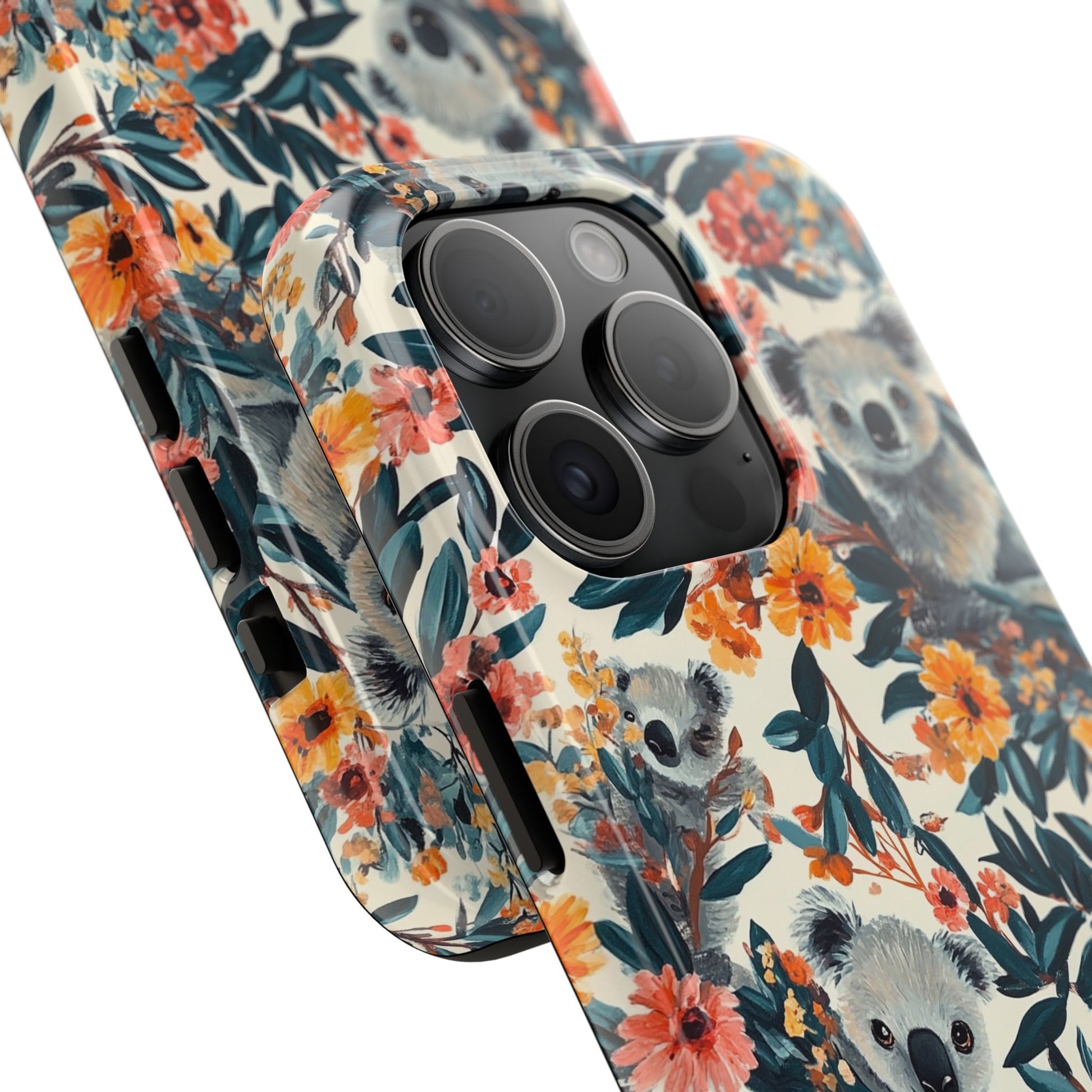 A sturdy and durable phone case featuring a charming design of koalas among flowers. The tough material and impact-resistant features make it perfect for everyday use, providing protection against scratches and shocks. Ideal for animal lovers and nature enthusiasts, this phone case is a great accessory for those who appreciate cute and whimsical designs. Perfect for gifting on birthdays, holidays, or as a special treat for yourself.