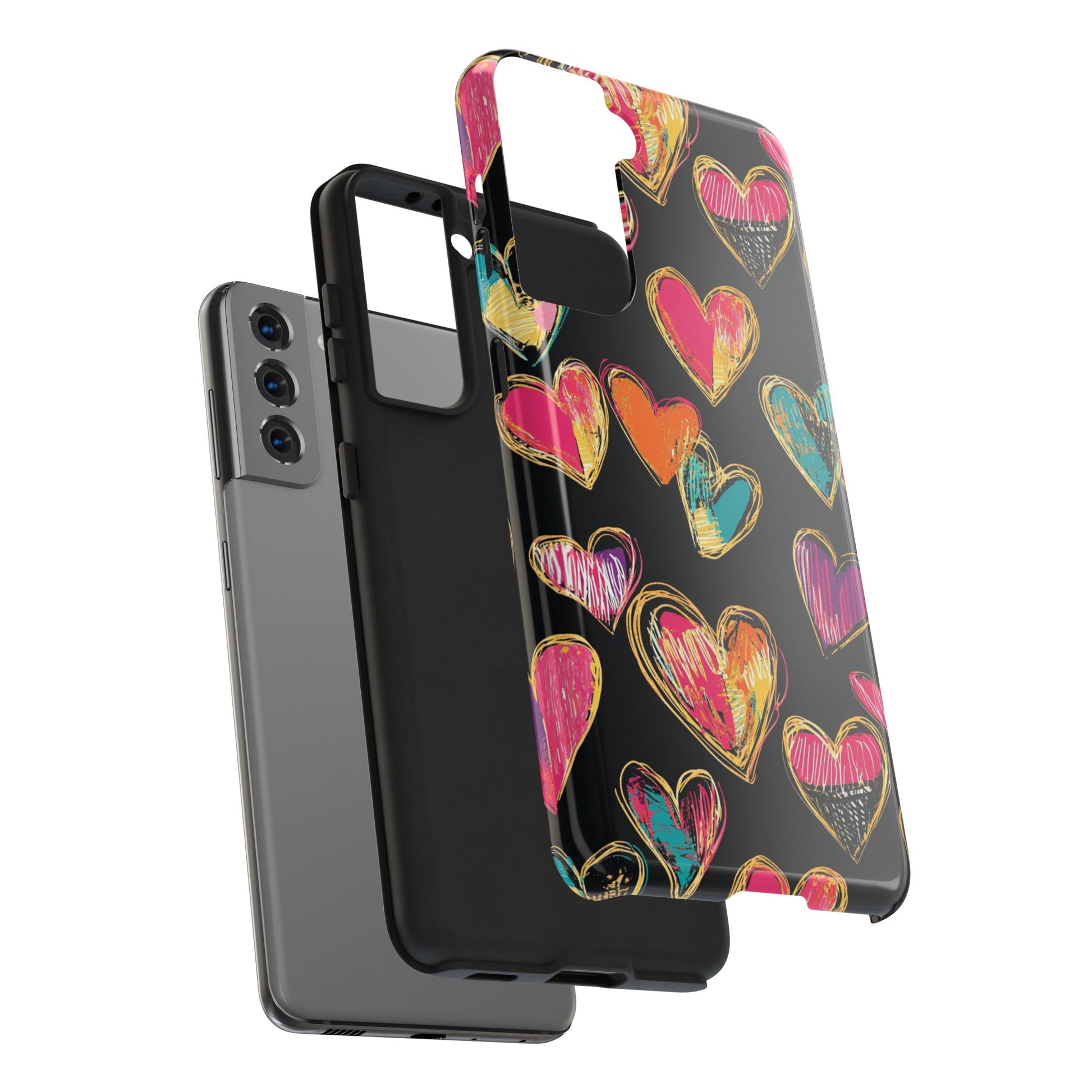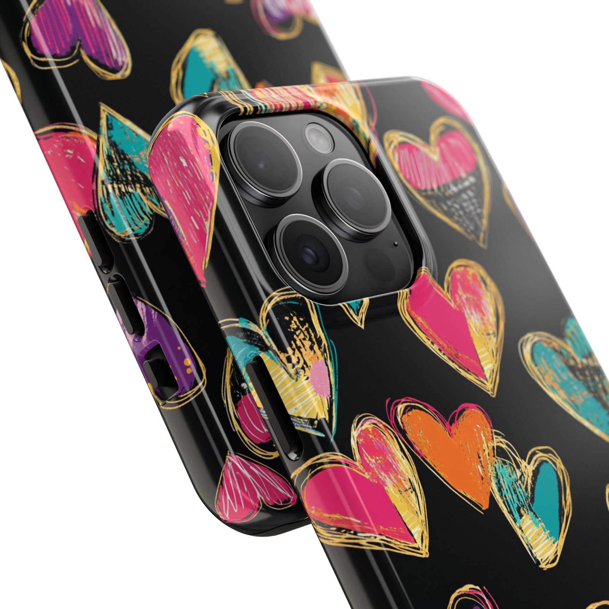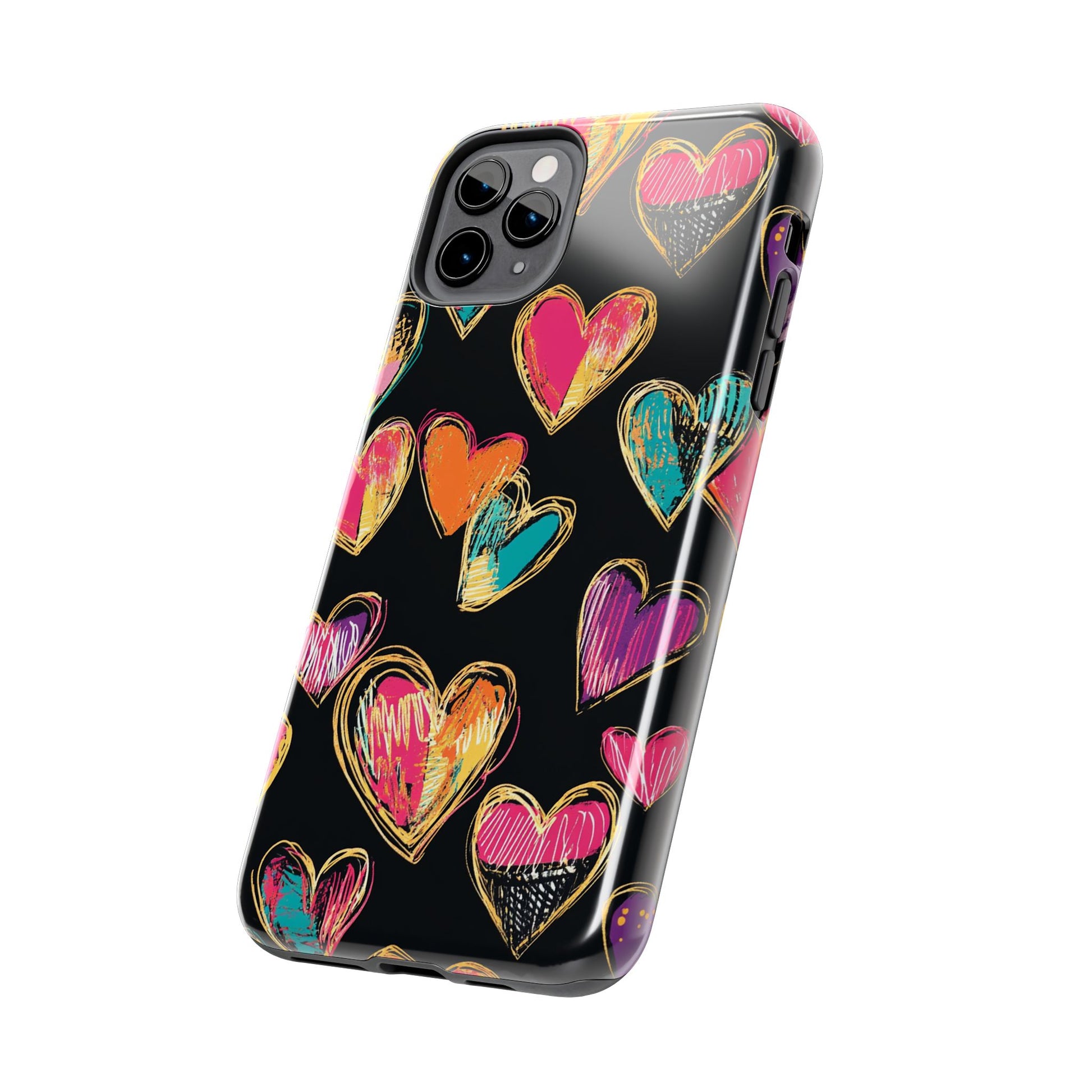 Colorful hearts make for a playful pop of color. This phone case is perfect for those who want to protect their device in style. Ideal for those who love colorful and unique accessories. Great for Valentine's Day, birthdays, or simply for adding a pop of color to your tech accessories.