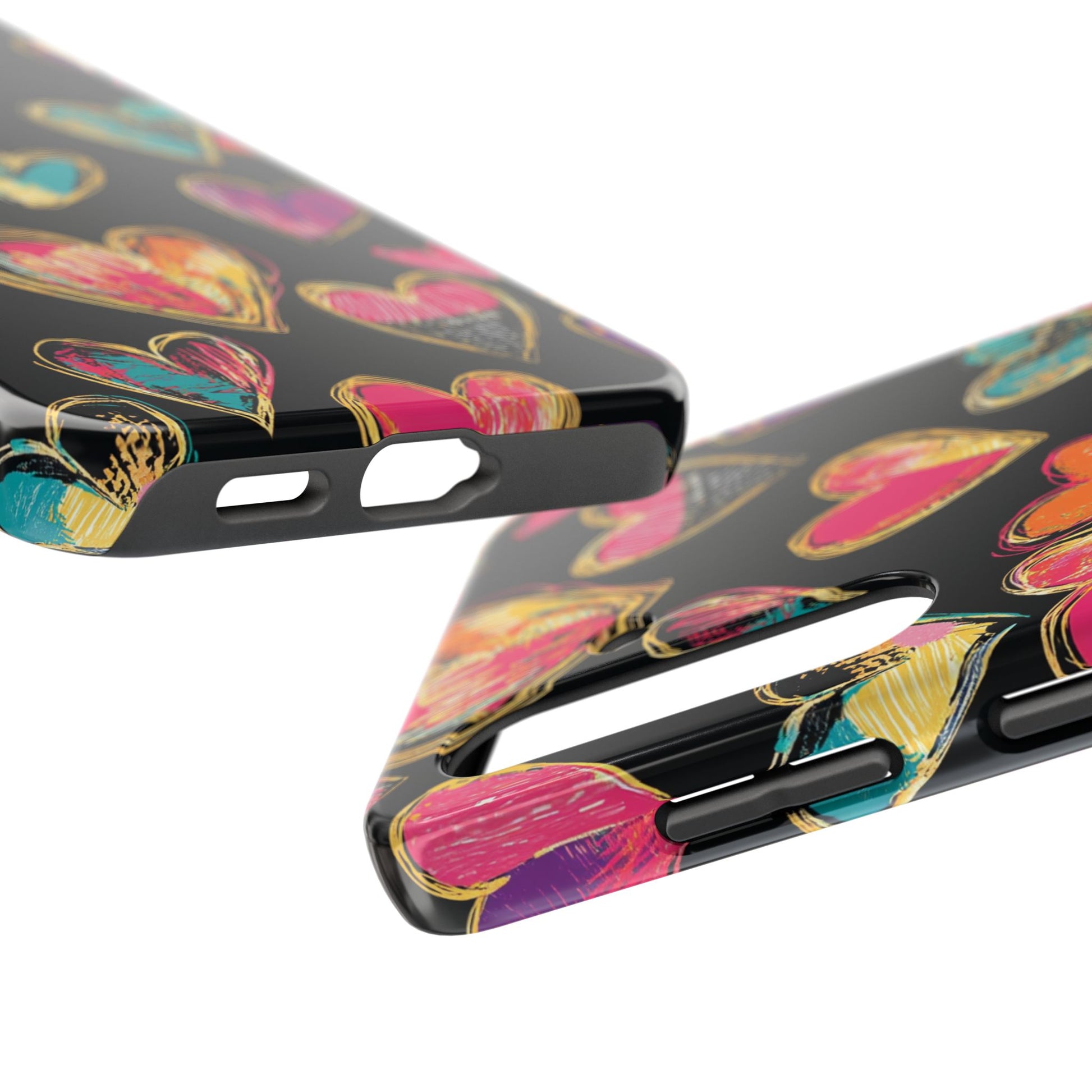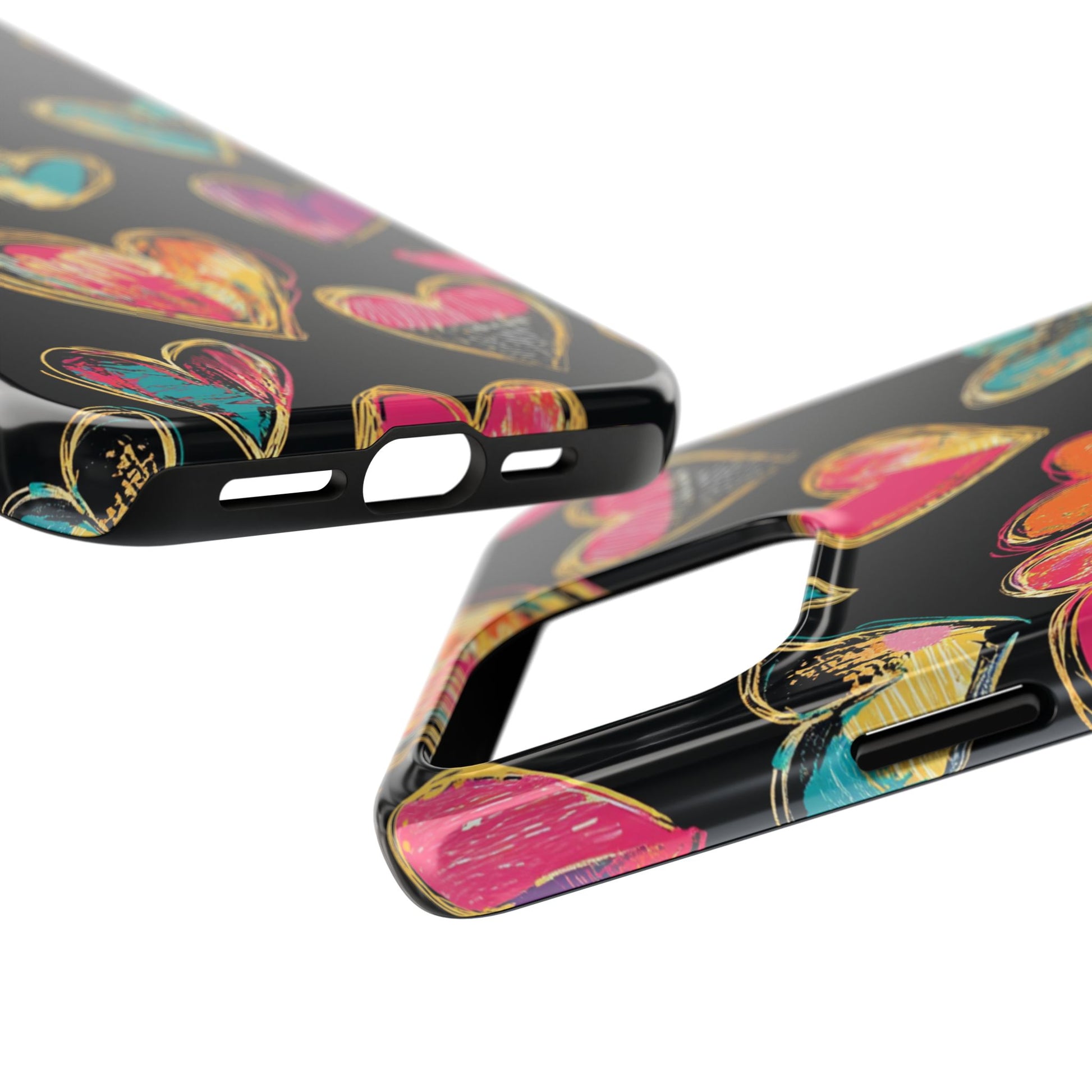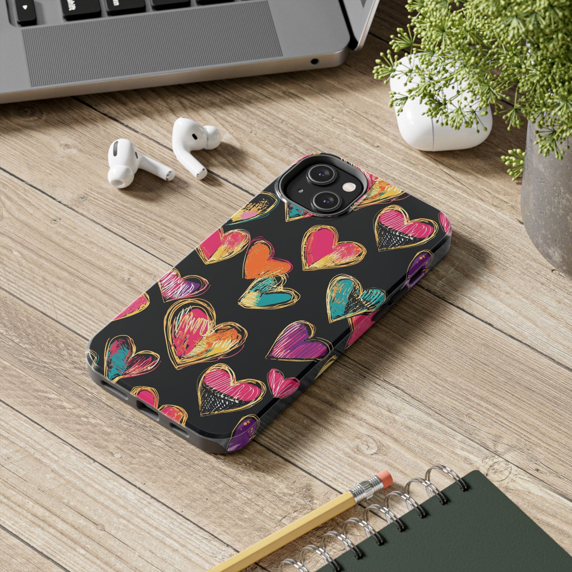 Colorful hearts make for a playful pop of color. This phone case is perfect for those who want to protect their device in style. Ideal for those who love colorful and unique accessories. Great for Valentine's Day, birthdays, or simply for adding a pop of color to your tech accessories.
