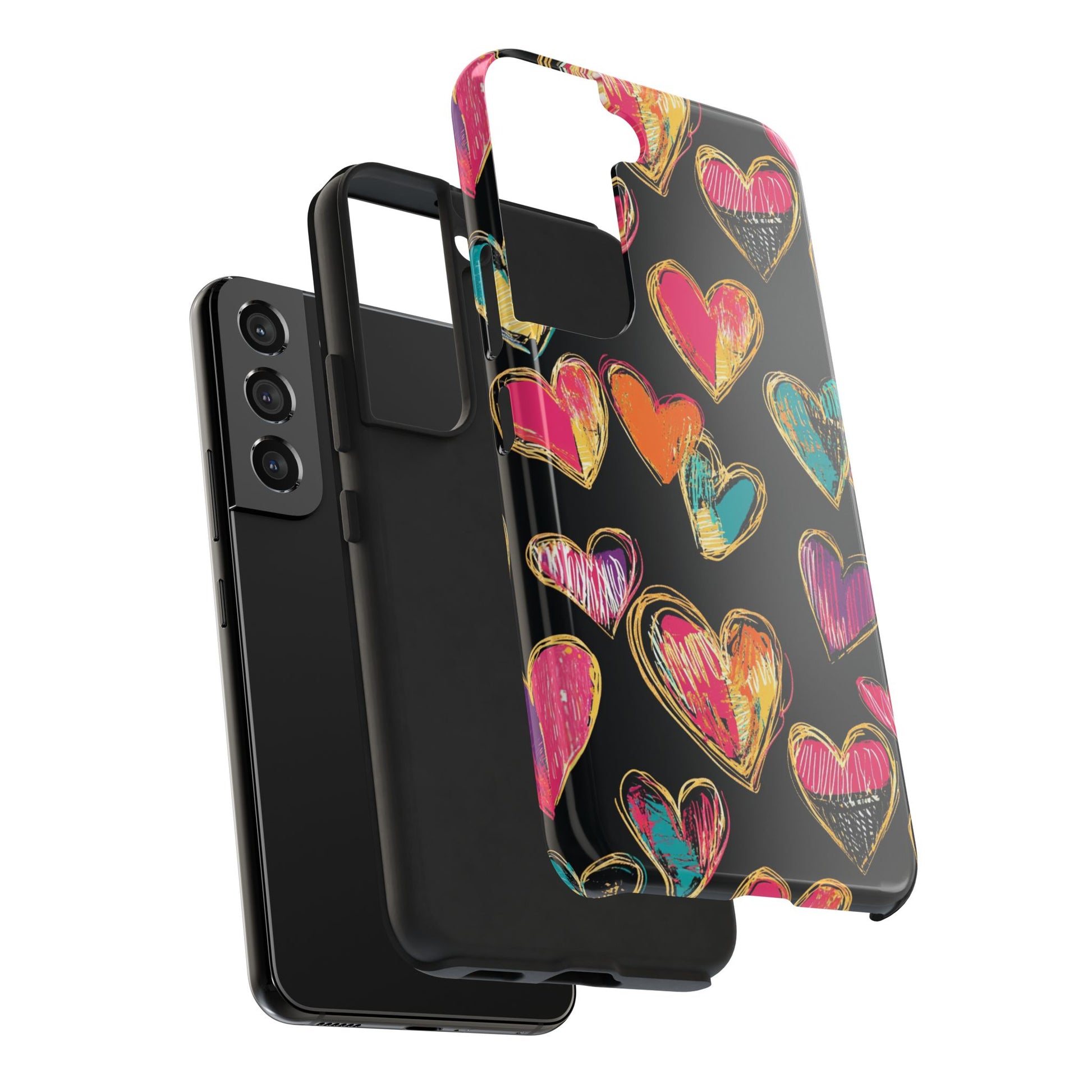 Love is in the Air | Colorful Chalk Hearts Design Phone Case