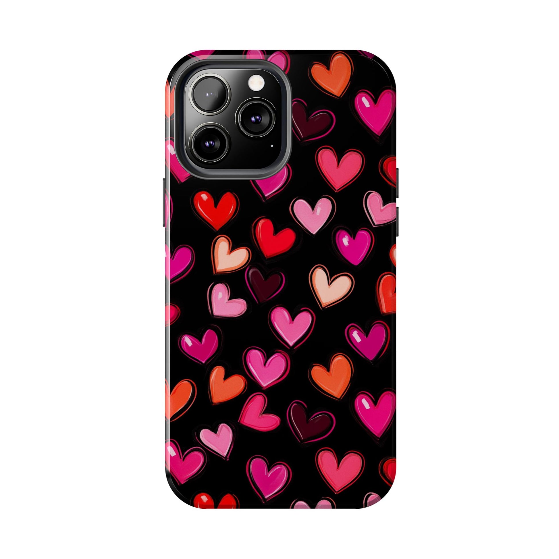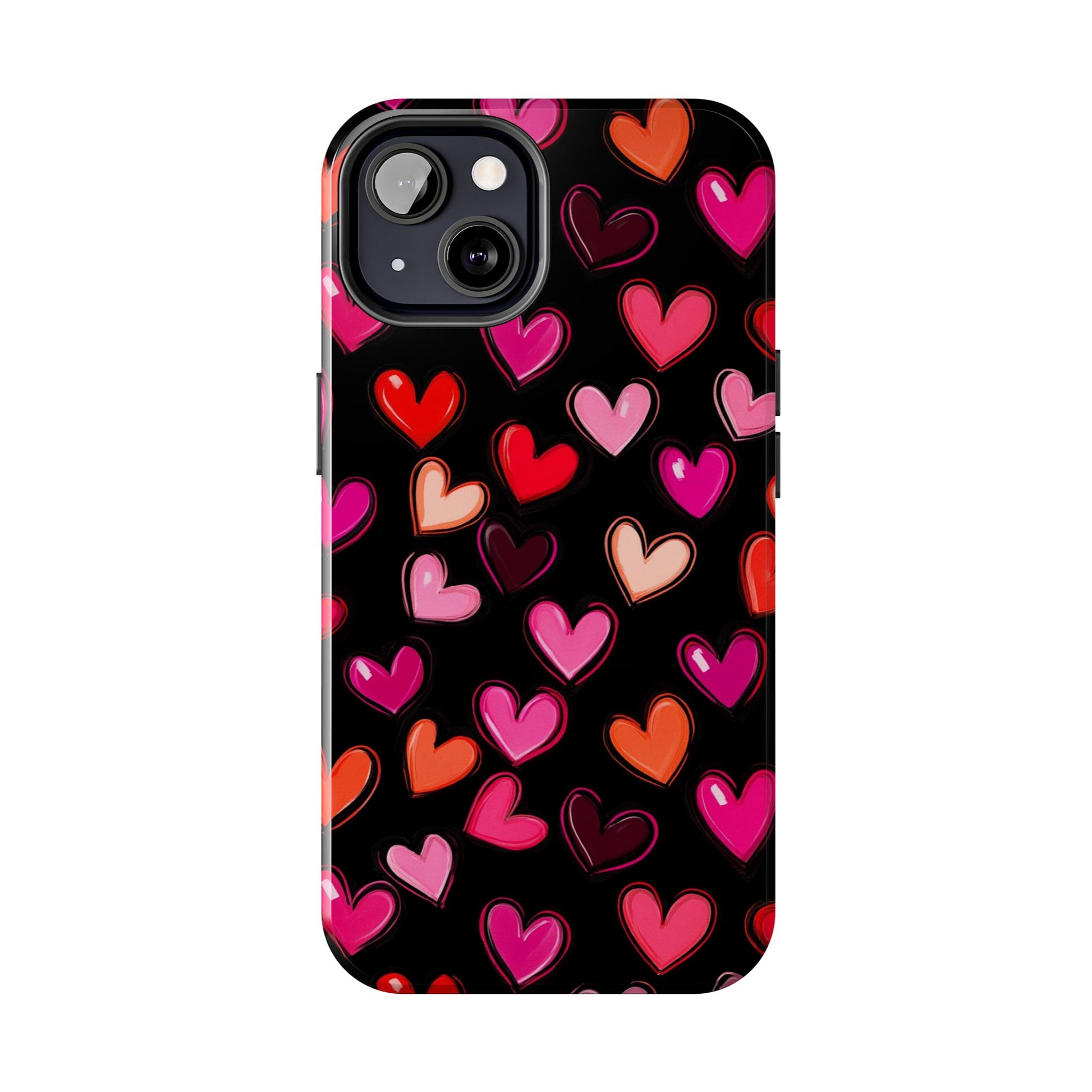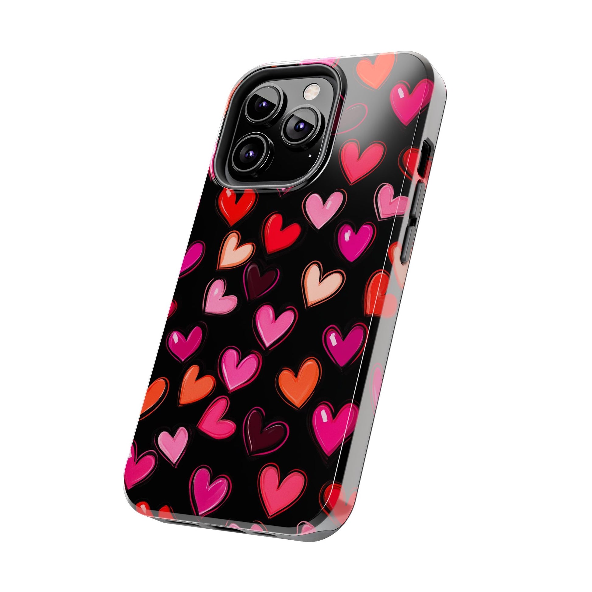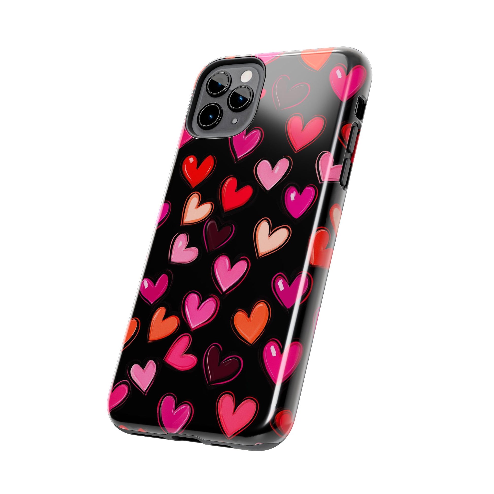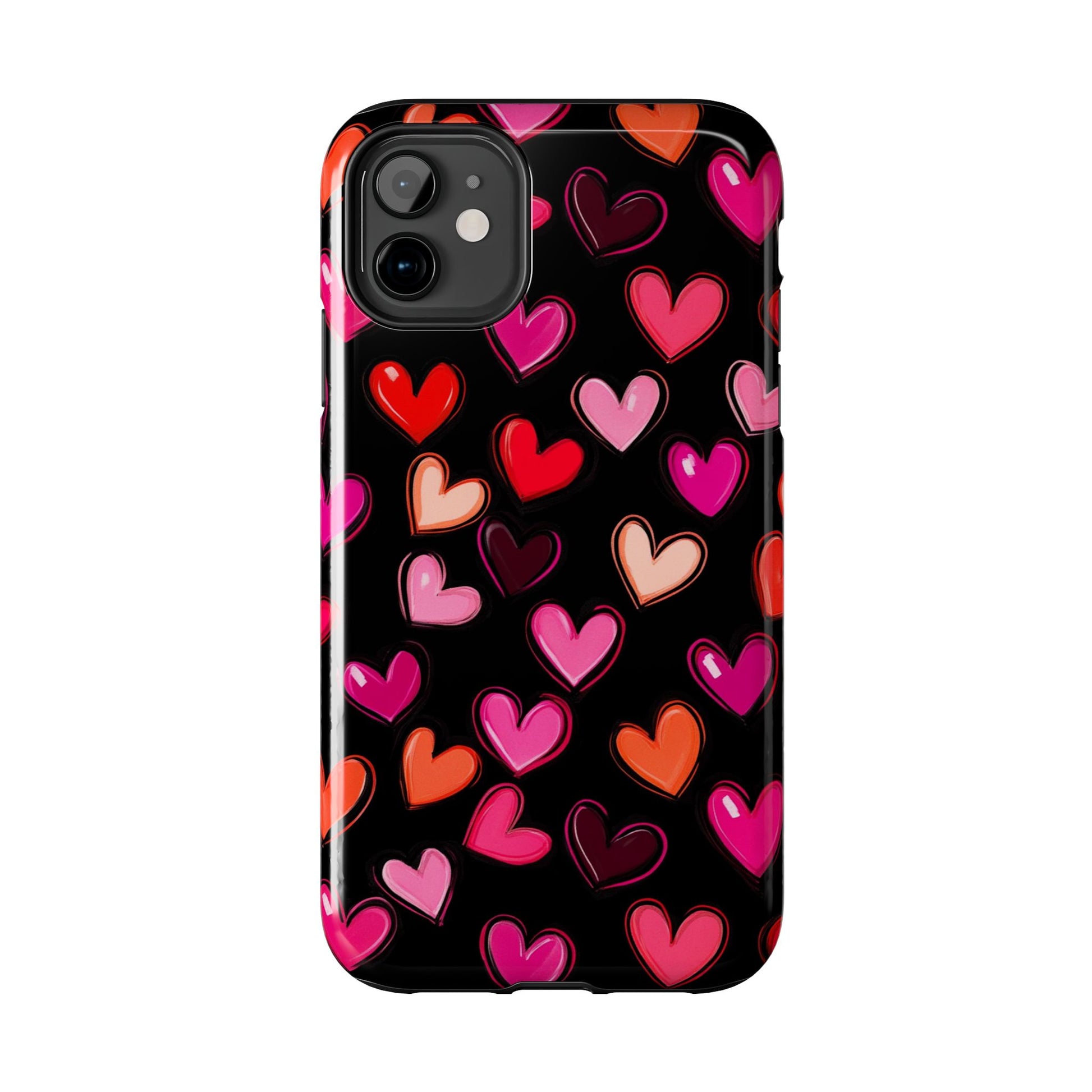 Colorful hearts design on a black background, giving a lovely and vibrant vibe. Perfect for those who want to protect their phone in style with a touch of love. Ideal for Valentine's Day, birthdays, or as a thoughtful gift for a loved one.