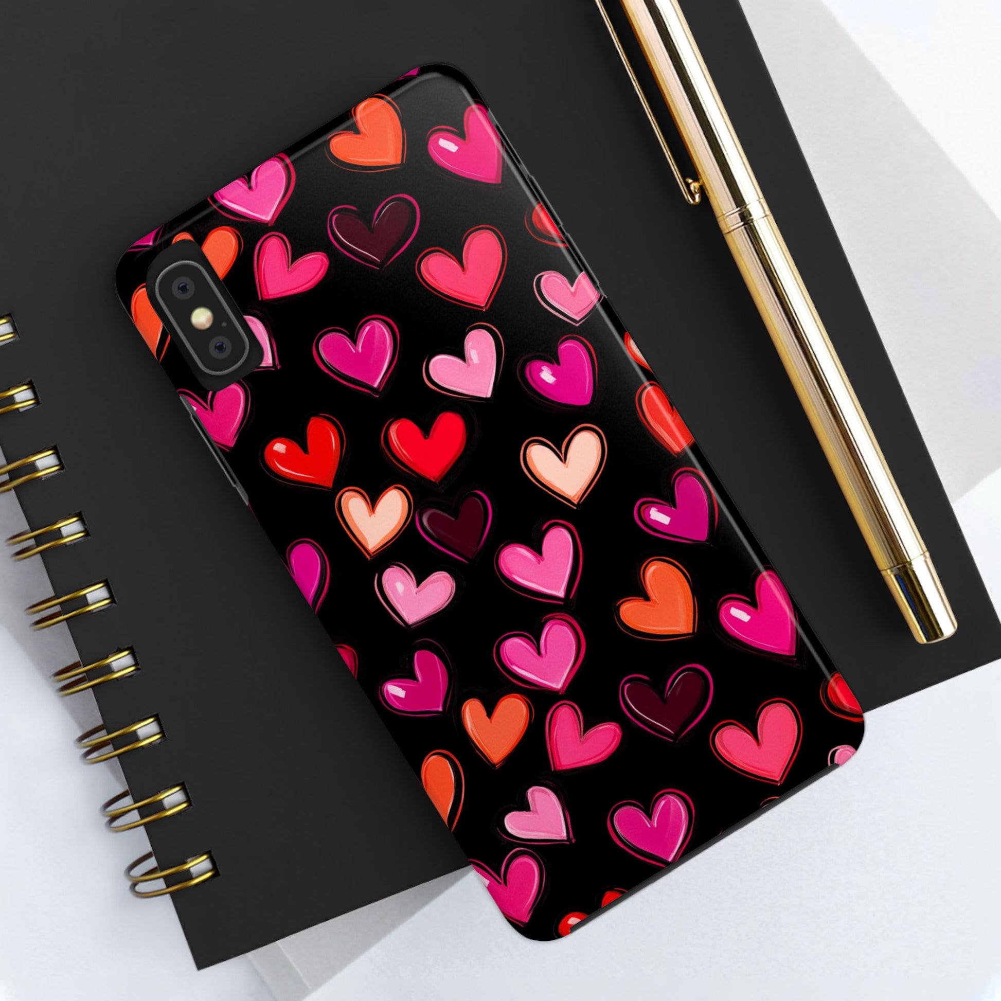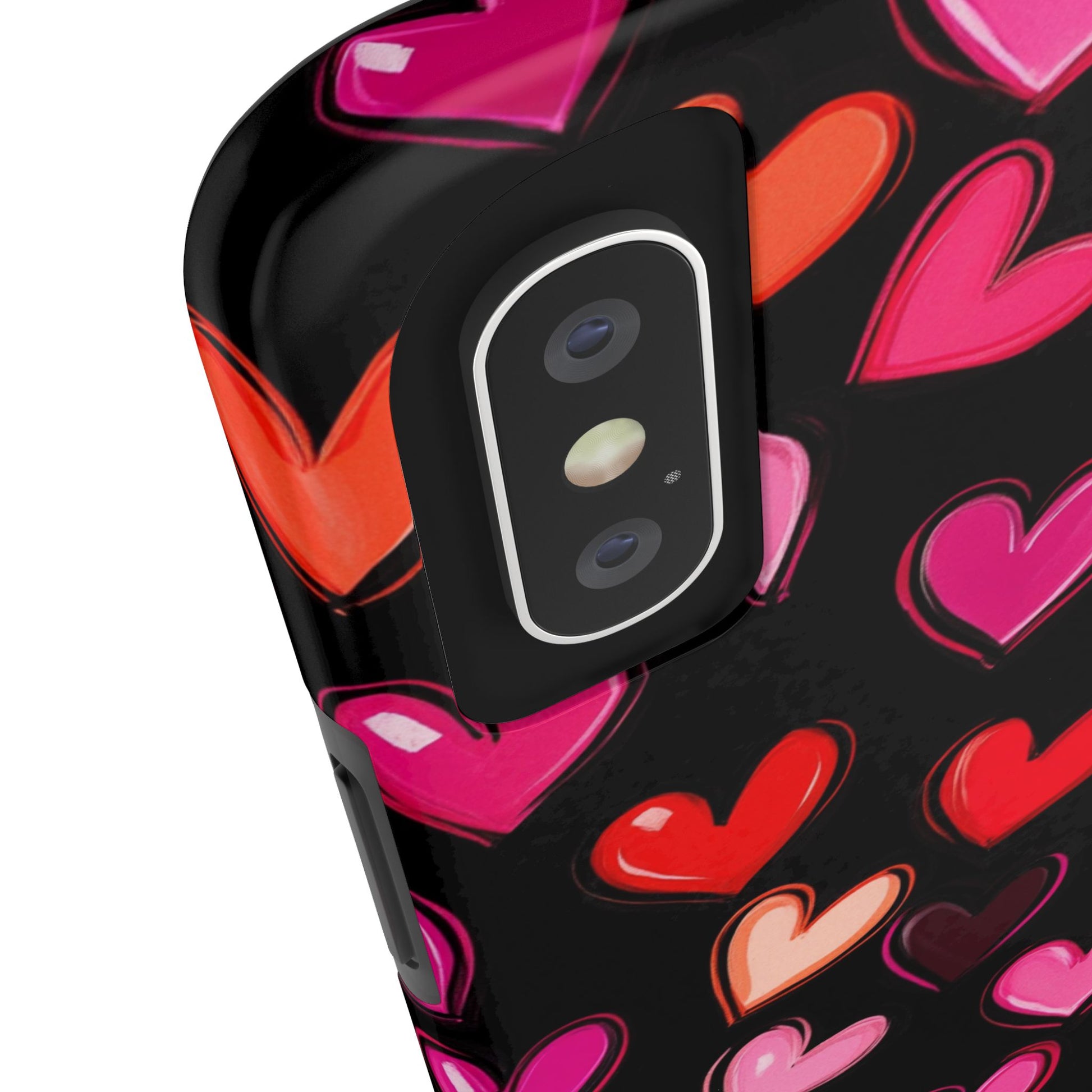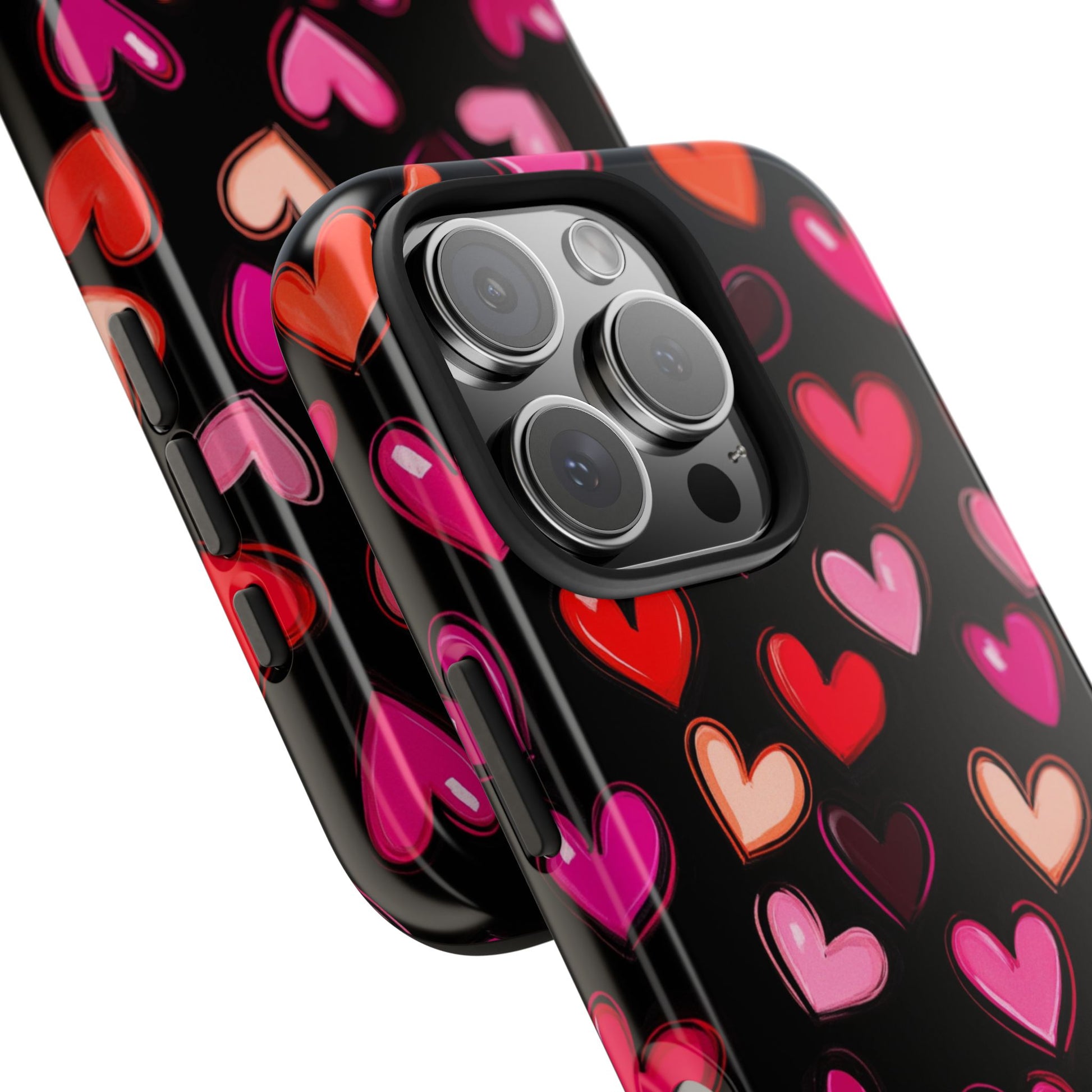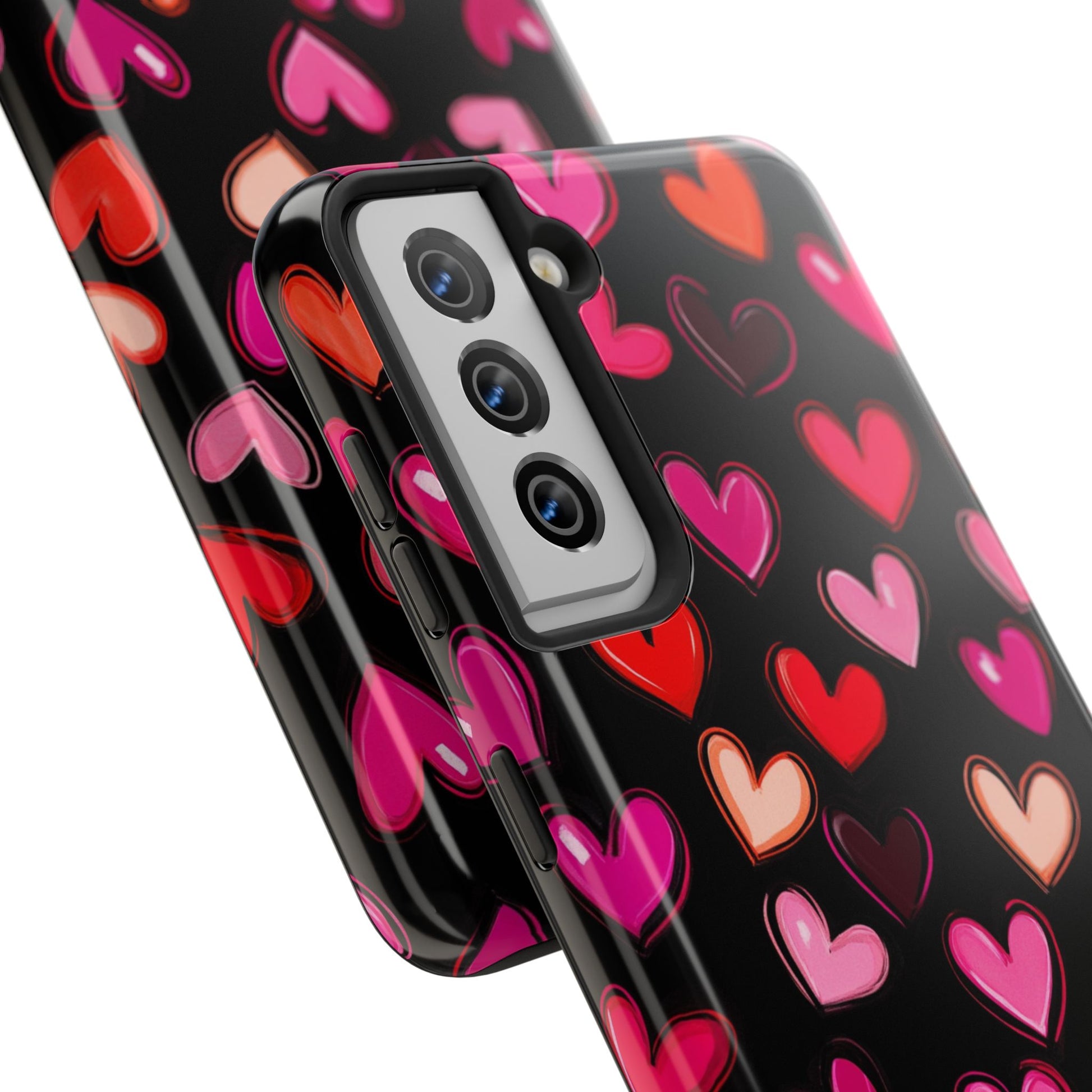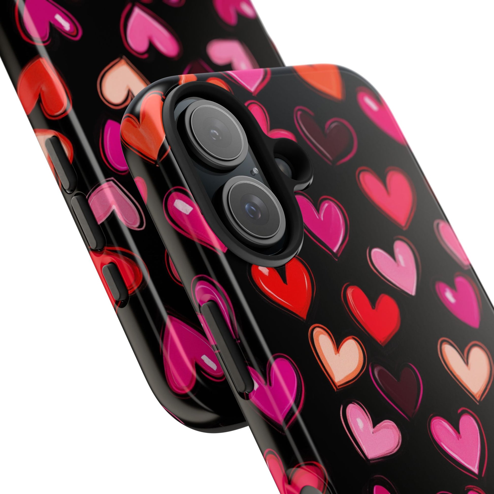 Colorful hearts design on a black background, giving a lovely and vibrant vibe. Perfect for those who want to protect their phone in style with a touch of love. Ideal for Valentine's Day, birthdays, or as a thoughtful gift for a loved one.