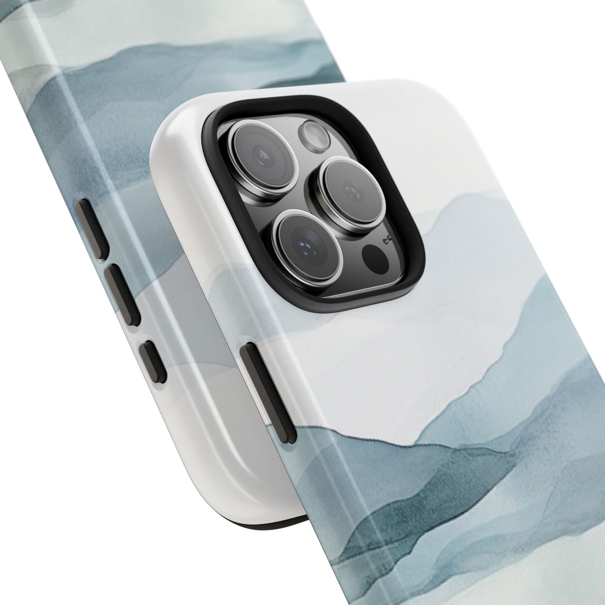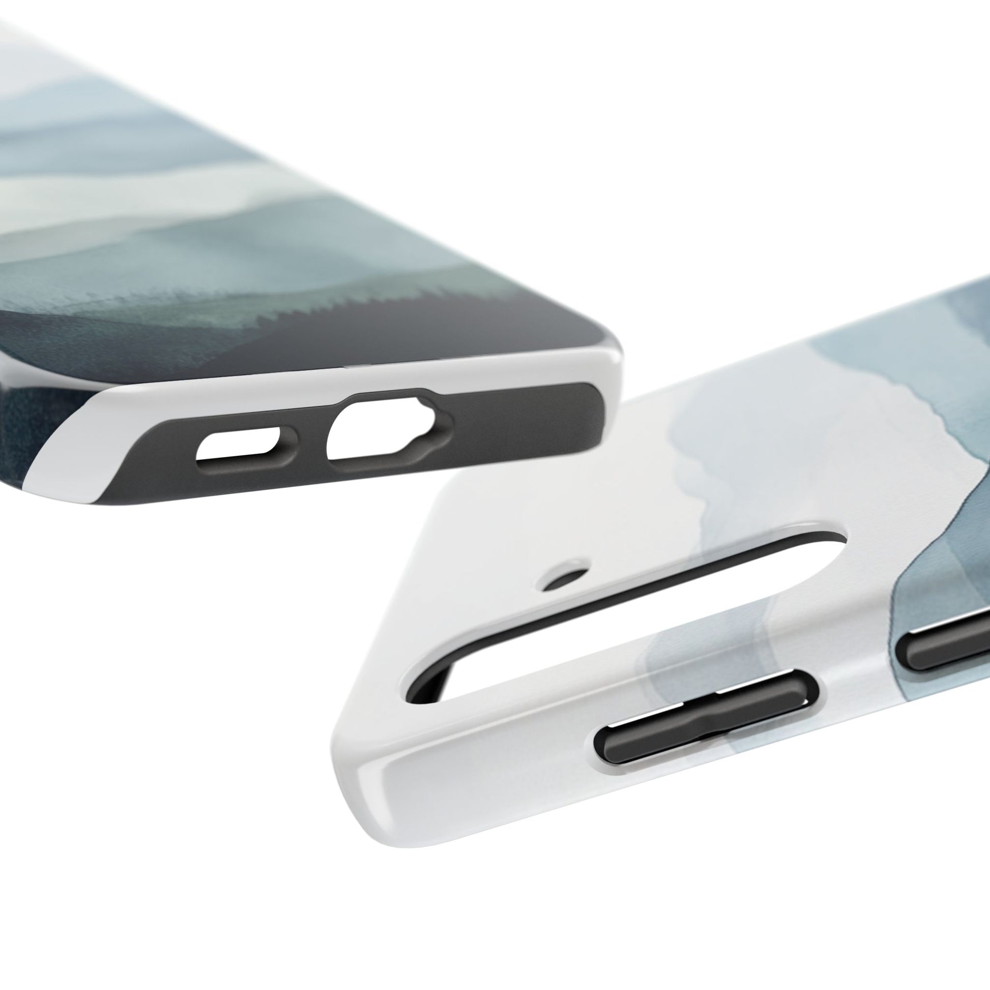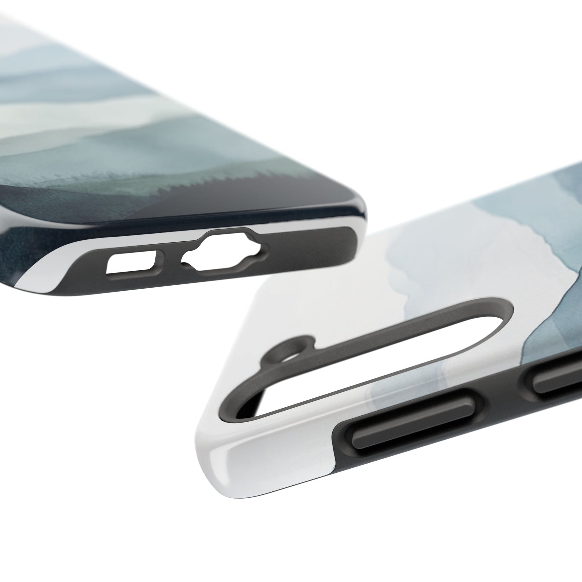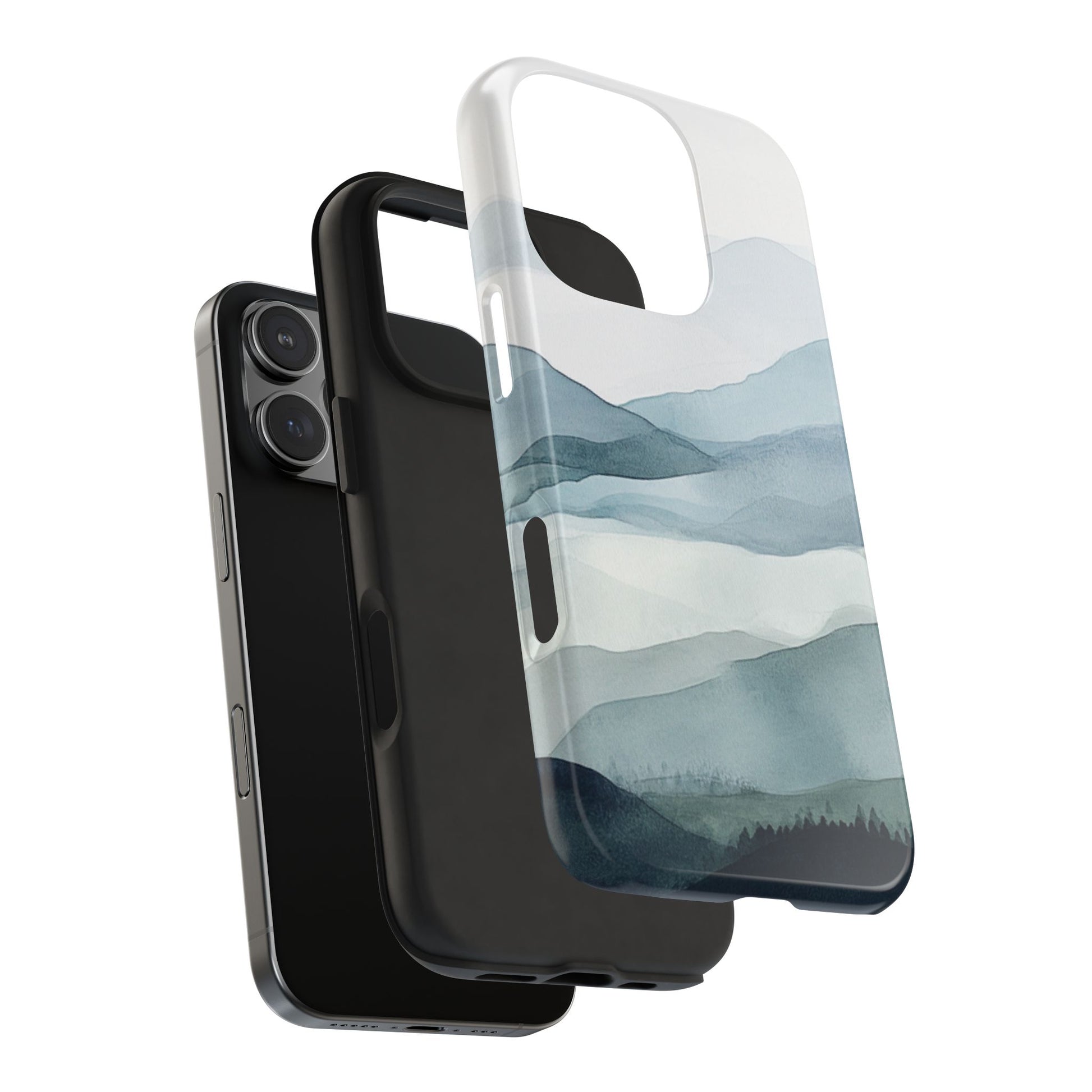 A sturdy and durable phone case featuring a beautiful watercolor mountain design. Perfect for outdoor enthusiasts and nature lovers, this phone case provides excellent protection while adding a touch of nature to your everyday life. Ideal for hikers, campers, and travelers. Great for gifts on birthdays, holidays, and special occasions.