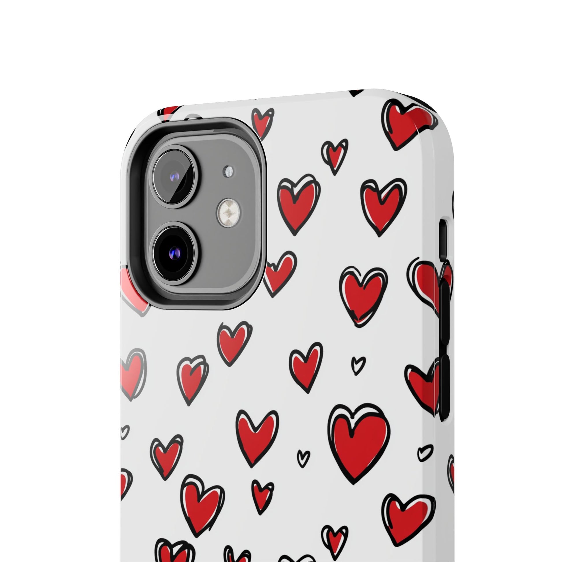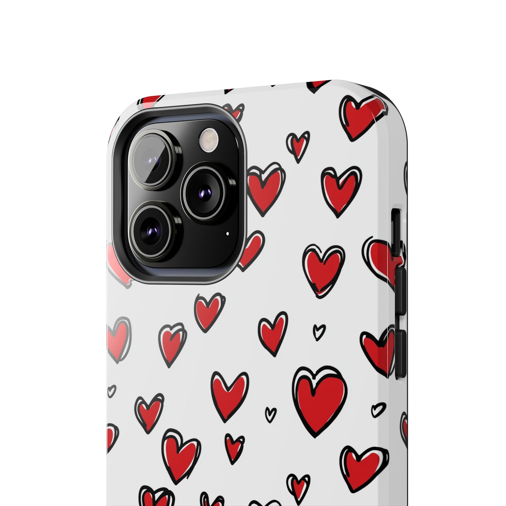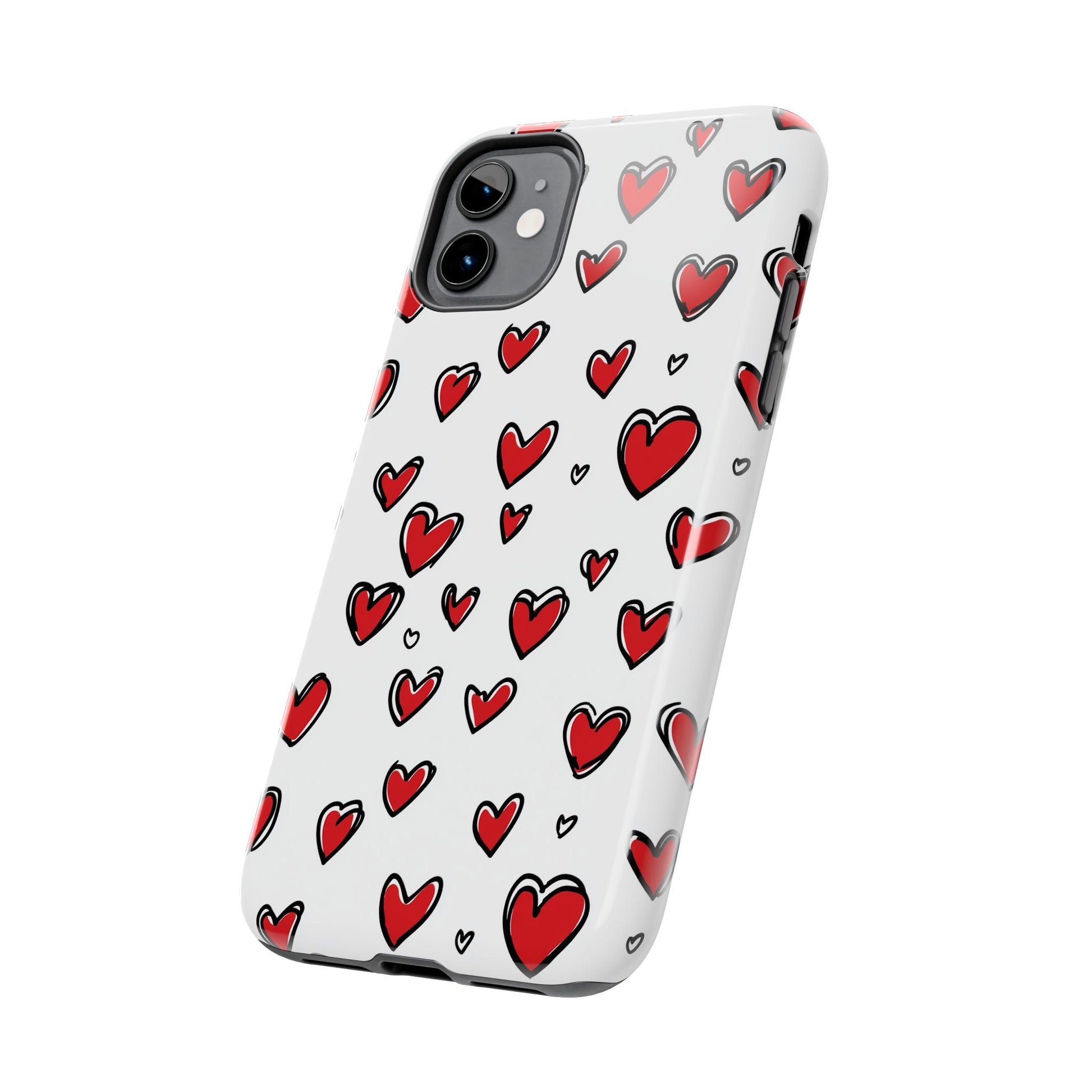This phone case features a design with red hearts on a white background, giving a romantic and charming vibe. It is perfect for those who want to show their love in a stylish way. Ideal for Valentine's Day, anniversaries, or as a thoughtful gift for a significant other.