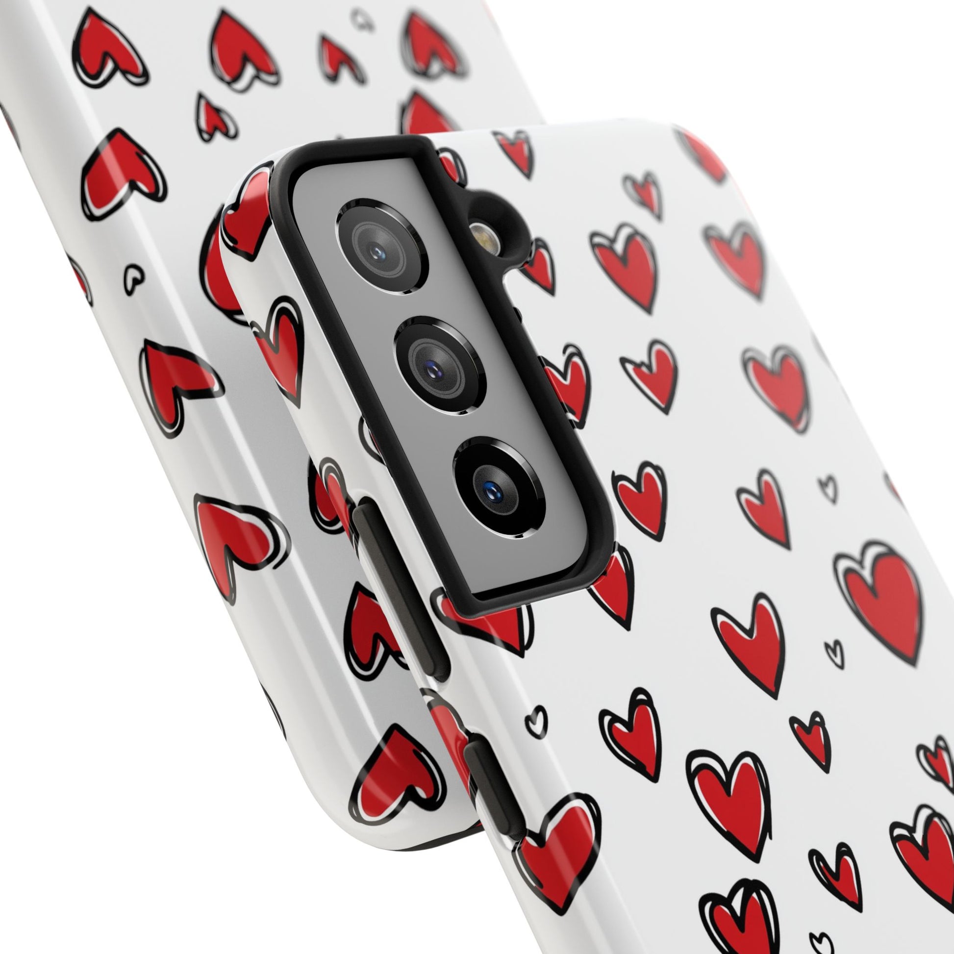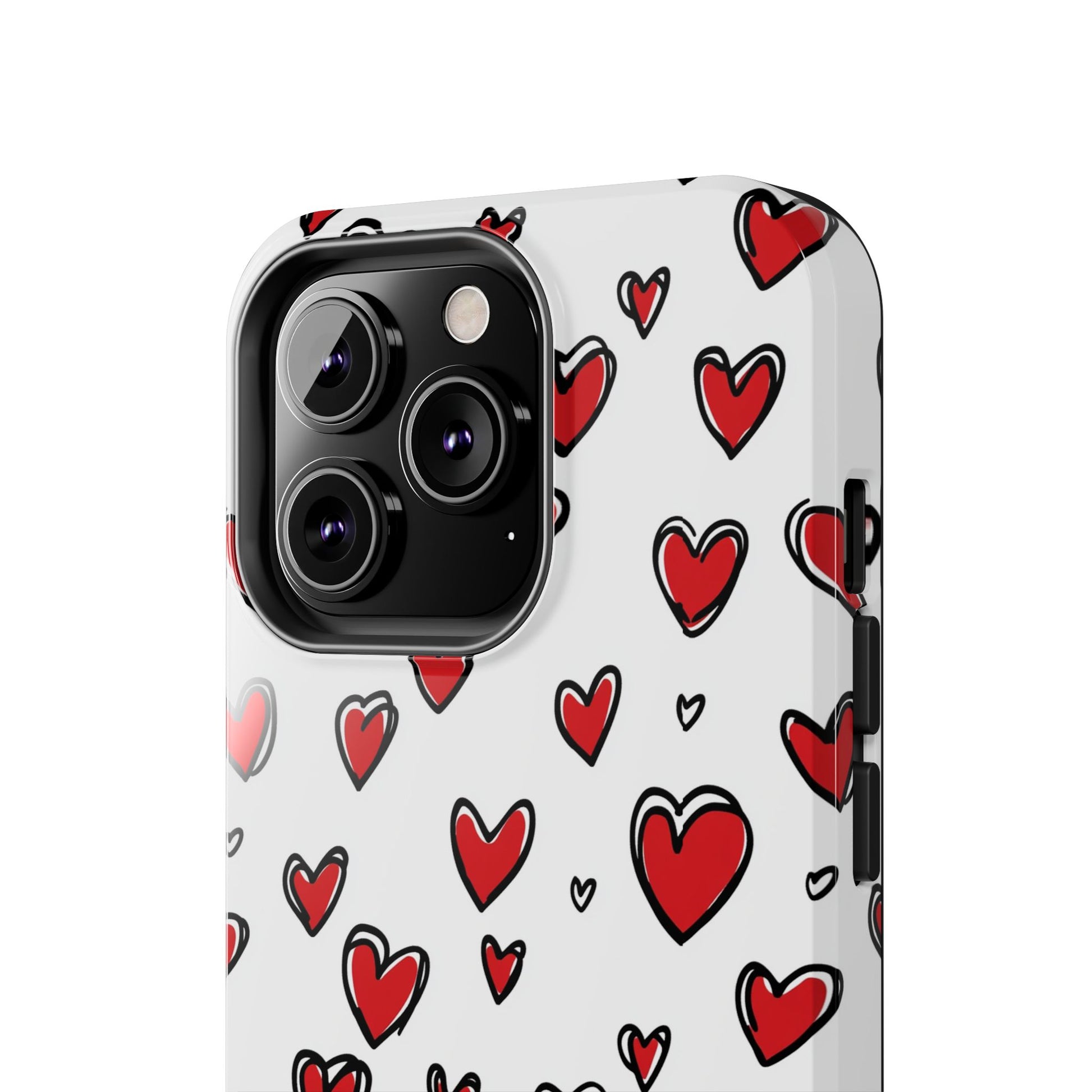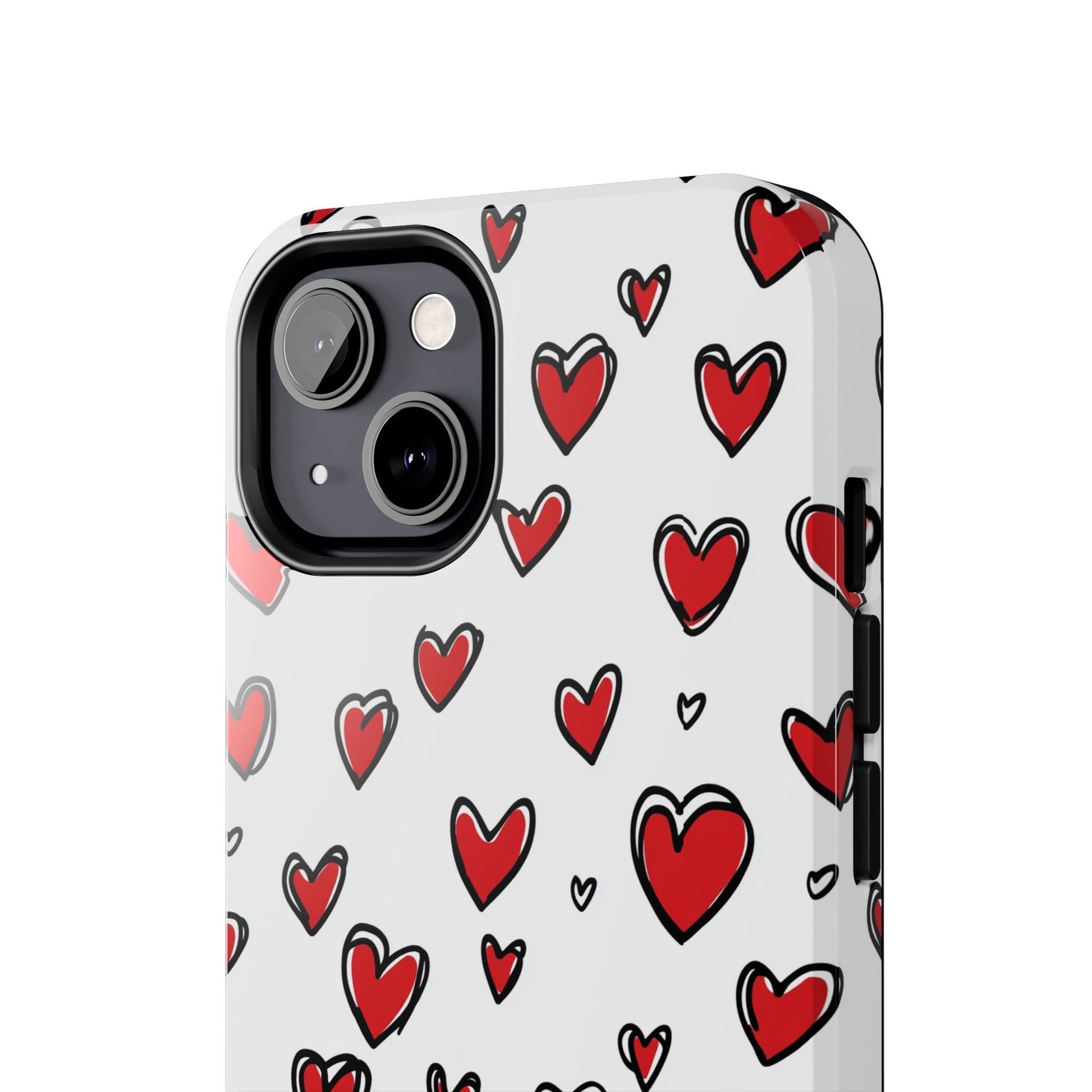This phone case features a design with red hearts on a white background, giving a romantic and charming vibe. It is perfect for those who want to show their love in a stylish way. Ideal for Valentine's Day, anniversaries, or as a thoughtful gift for a significant other.