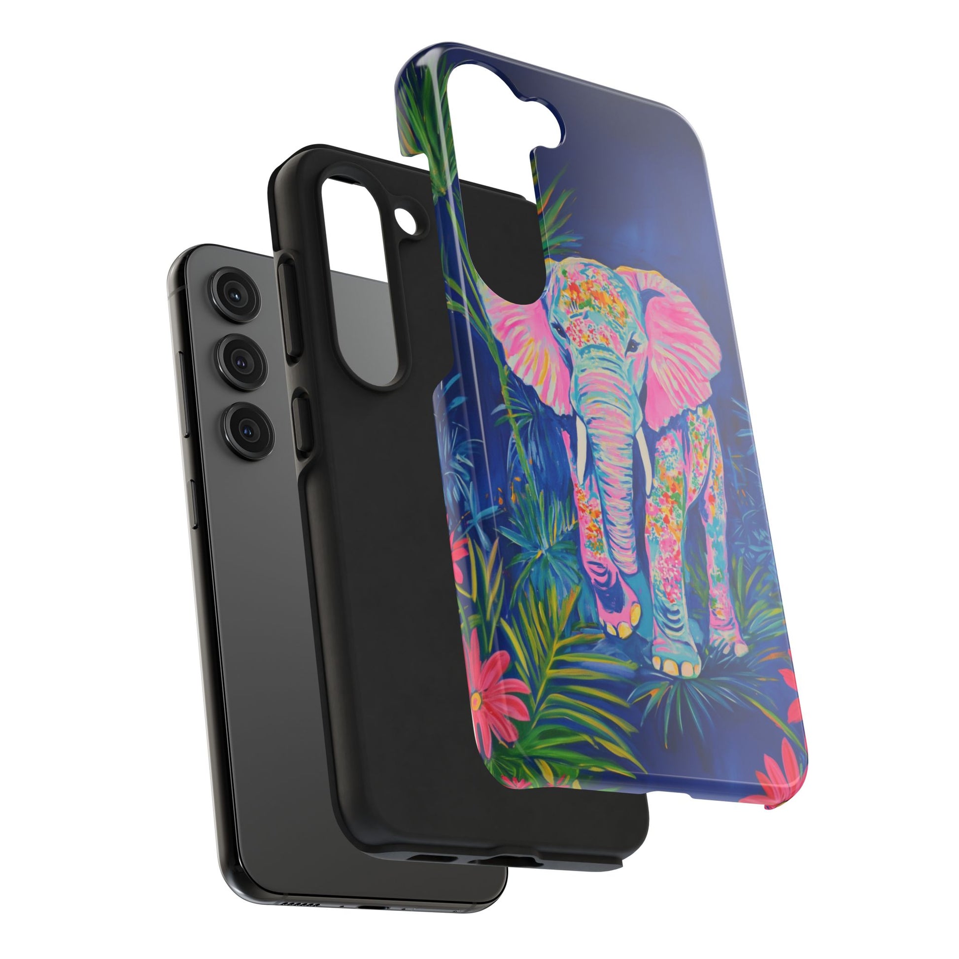 Introducing our vibrant Tough Phone Cases, perfect for those who want to protect their devices without sacrificing style. Featuring an eye-catching design of a colorful elephant surrounded by lush foliage, this case brings a touch of nature and artistry to your everyday life. Its sturdy construction provides peace of mind, making it an ideal choice for adventurous souls or animal lovers. Perfect for gift-giving during holidays, birthdays, or just to celebrate life’s little moments, these cases add a unique flair to your tech. Stay chic and confident with a case that not only protects but also expresses your personality!